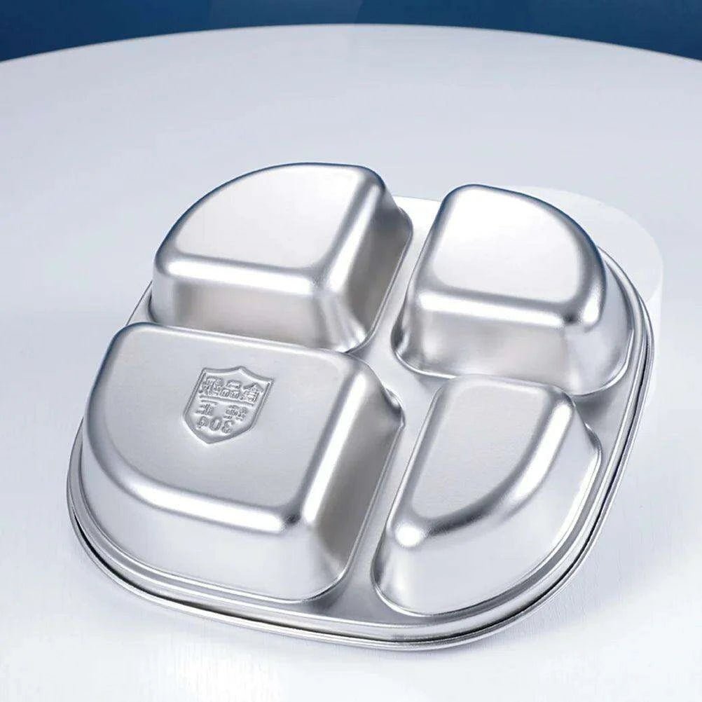 Sophisticated Stainless Steel Sectioned Plate for Gourmet Dining