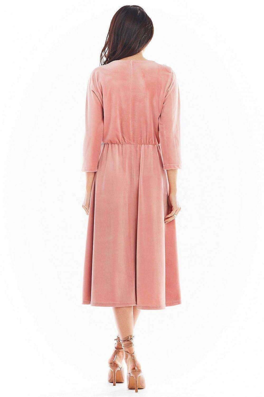Sophisticated Velour Midi Dress with 3/4 Sleeves