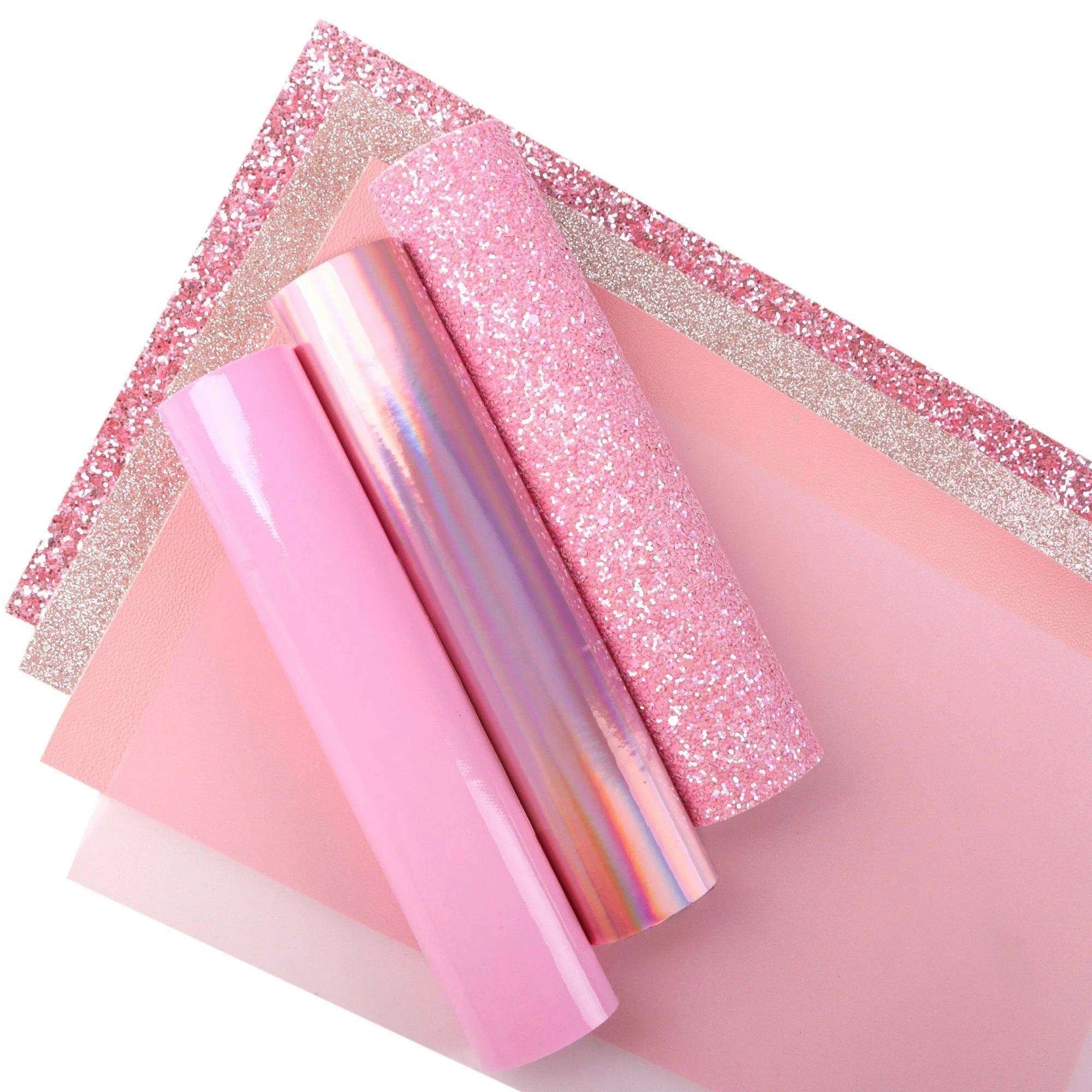 Sparkling Pink Faux Leather Crafting Set - 7 Glitter Sheets, 20x33cm Each