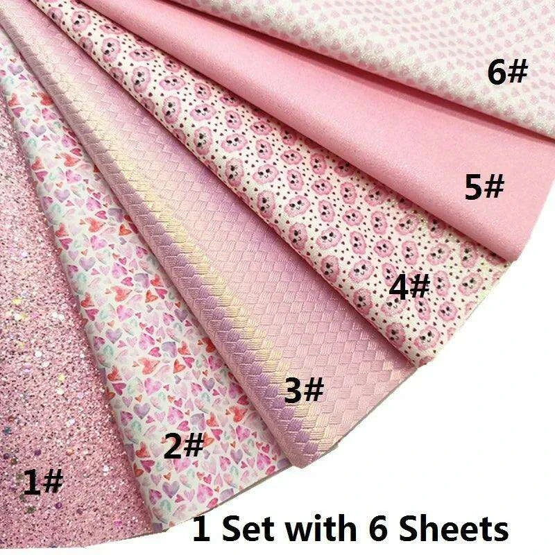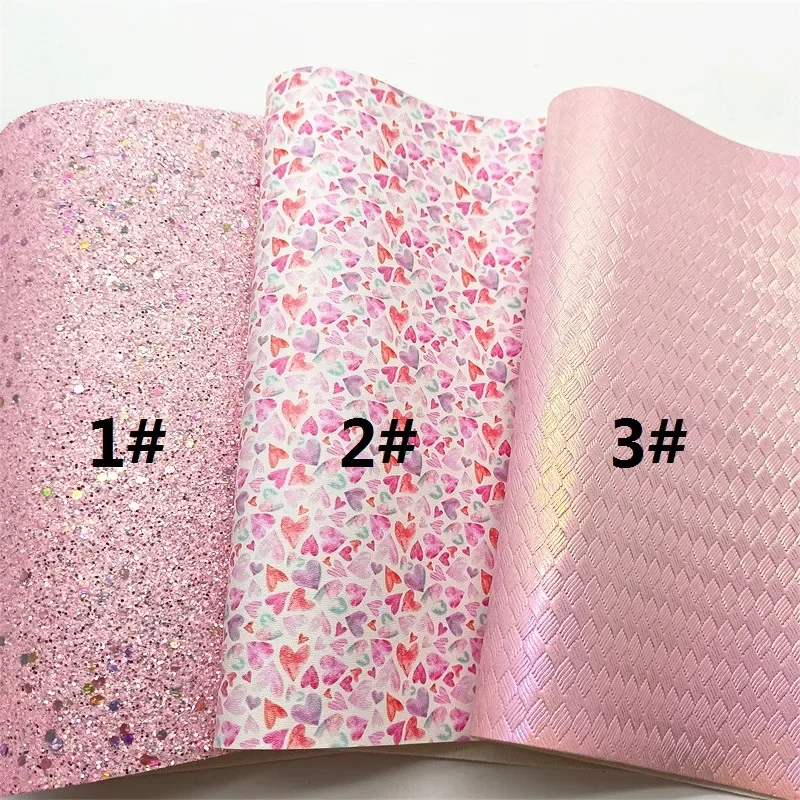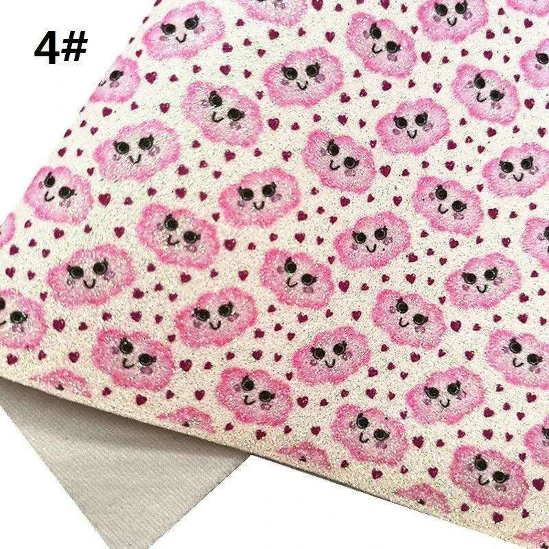 Feuille de cuir synthétique brillant imprimé nuage de cœur scintillant rose, tissage de Faux cuir synthétique pour l'artisanat de bricolage 8.2x11.4 SJ459