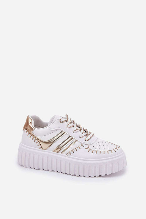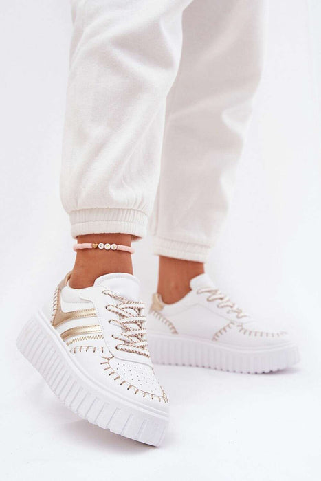 Stylish women's sneakers made of eco leather that combine a modern look with comfort. Set on a platform, they provide comfort and a fashionable look. Inside there is a foam insole covered with material, which guarantees excellent cushioning and comfort throughout the day. Rounded toes add lightness and ensure freedom of movement. These sneakers are an ideal choice for many styles, combining elegance with casual ease, fitting well with both sporty and everyday outfits.
