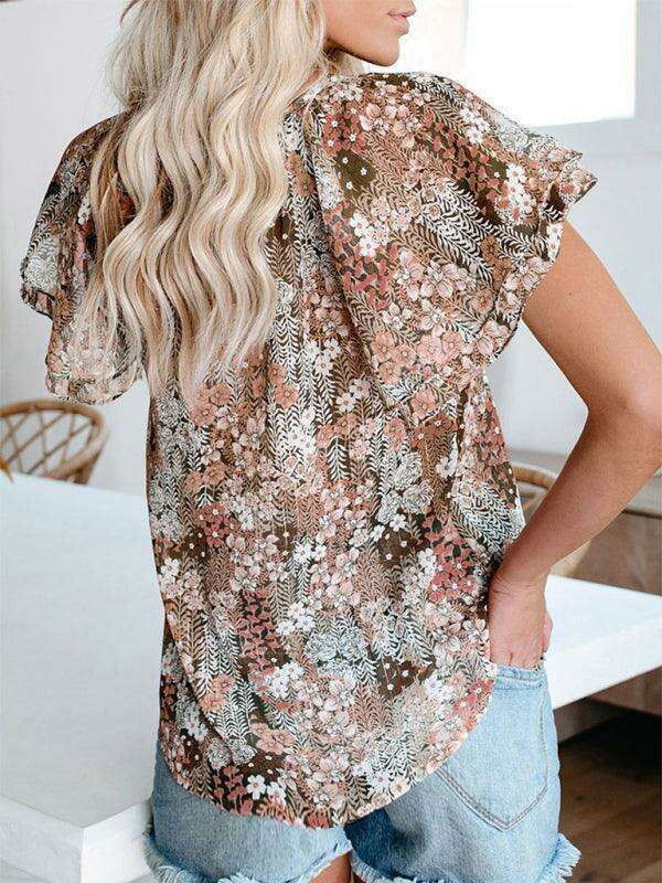 Floral Delight | Women's Relaxed Fit V-Neck Top with Short Sleeves