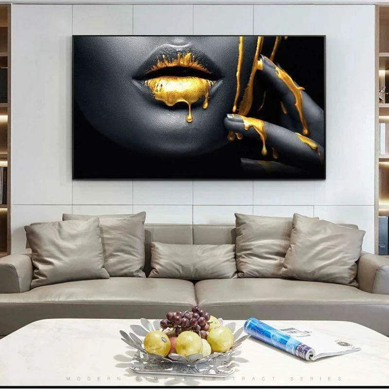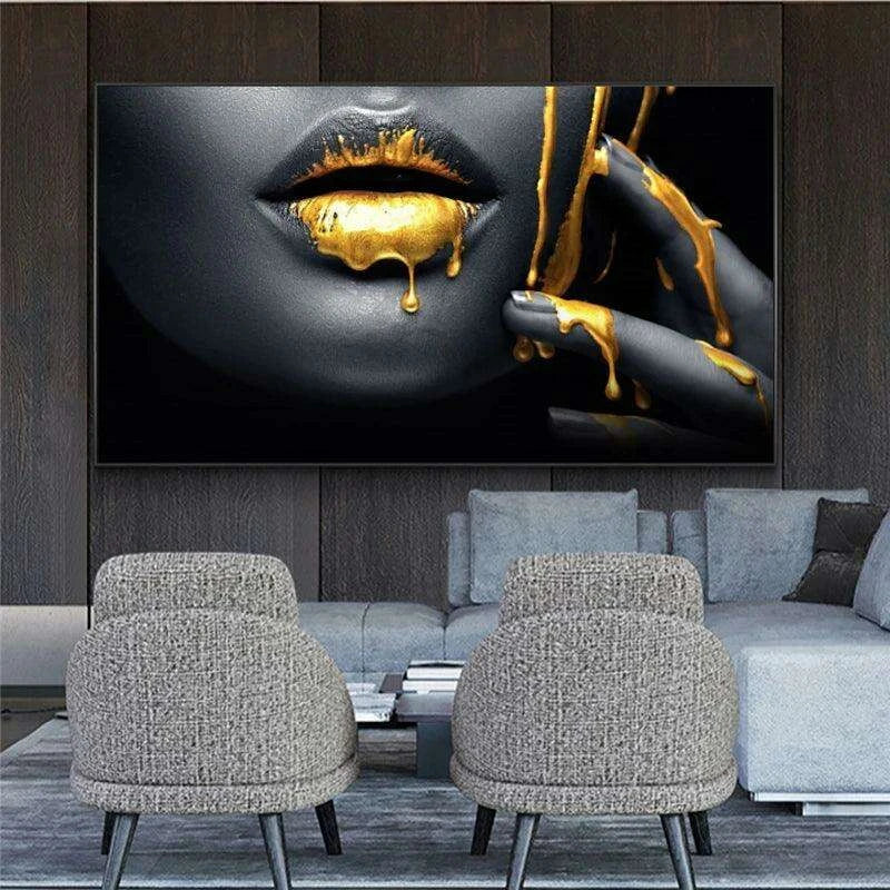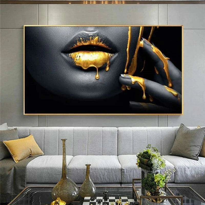 Stunning Golden Lips Canvas Art - Bold Tribute to Black Women for Chic Home Decor
