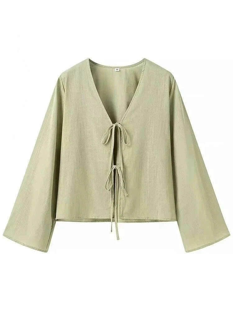 Introducing the Stylish 2024 Women's V-Neck Long Sleeve Tie Blouse - Effortless Everyday Chic, your go-to solution for blending comfort and elegance in your daily wardrobe. This exquisite blouse is designed for the modern woman, providing a chic look that seamlessly fits into any lifestyle. Whether you're heading to the office, enjoying a casual brunch, or dressing up for a night out, this blouse ensures you always look stylish.