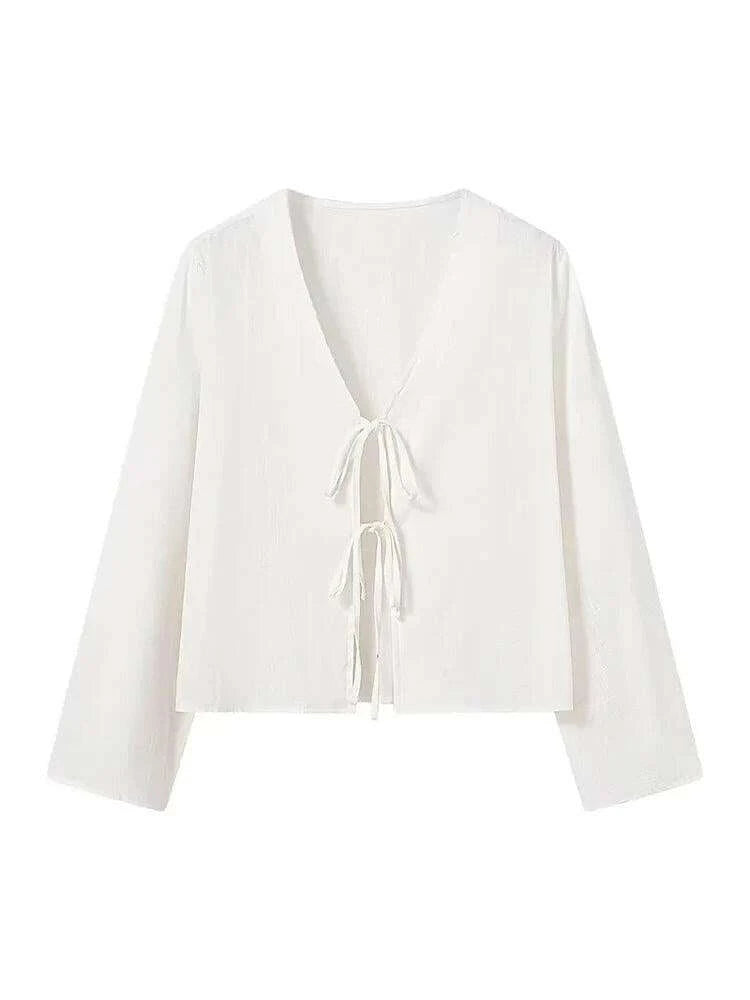 Stylish 2024 Women's V-Neck Long Sleeve Tie Blouse - Effortless Everyday Chic