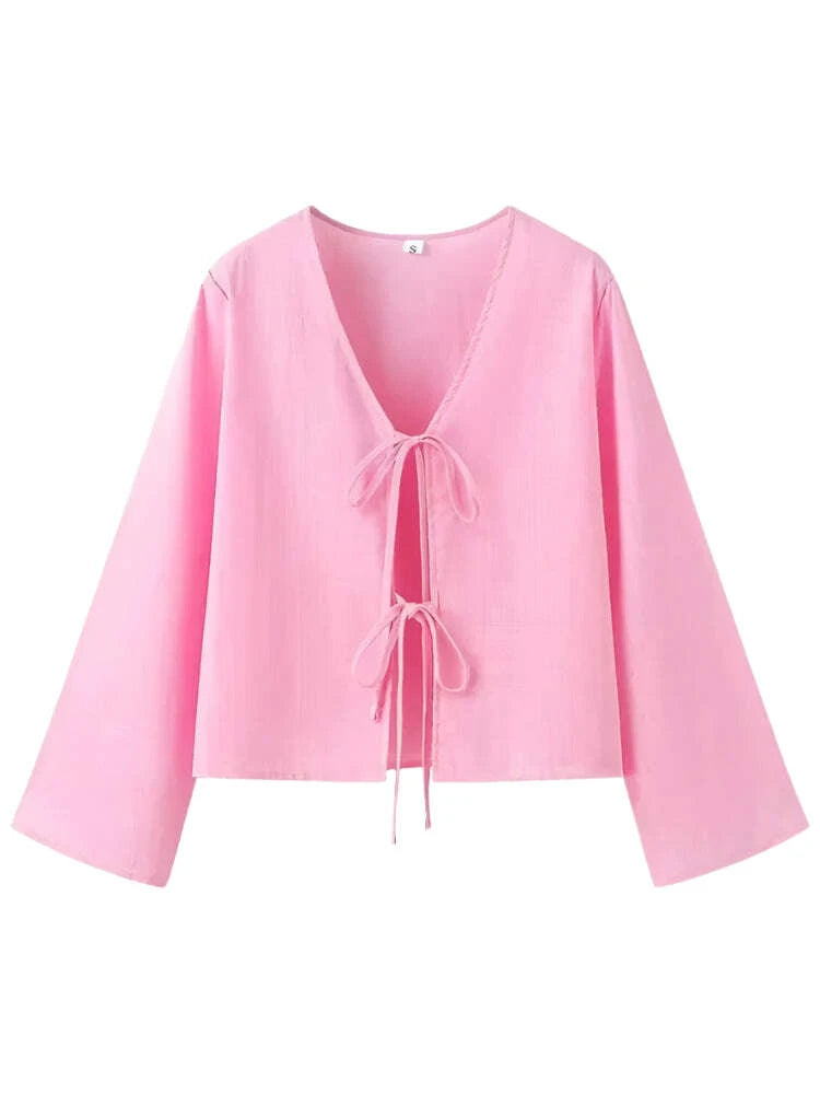 Stylish 2024 Women's V-Neck Long Sleeve Tie Blouse - Effortless Everyday Chic