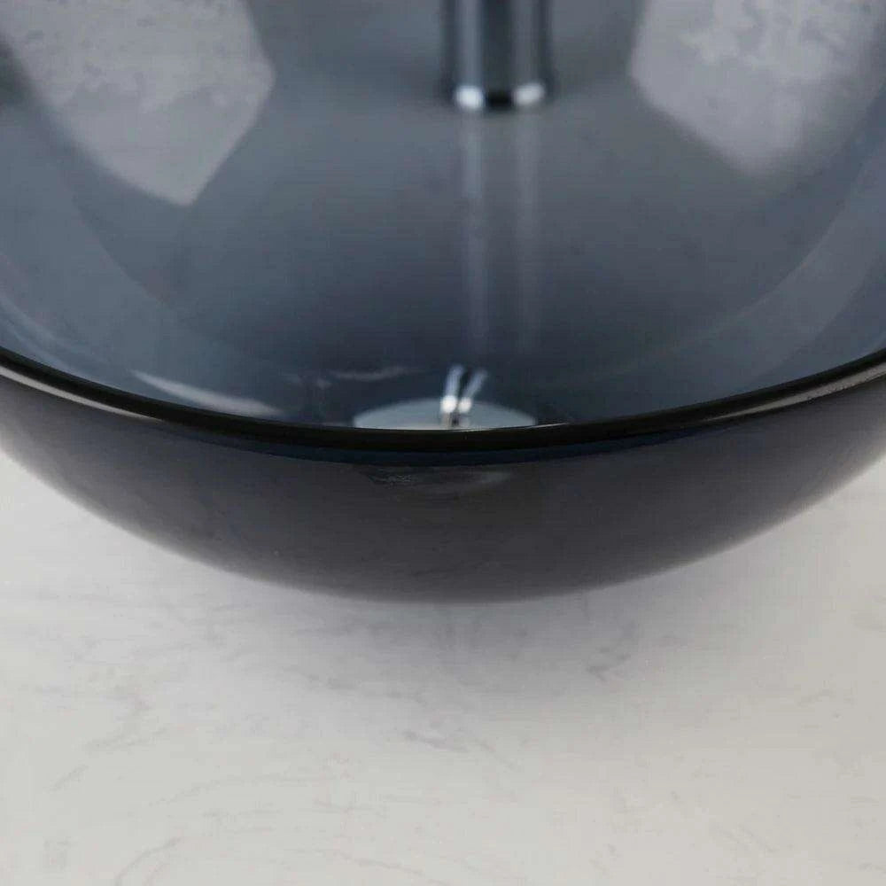 Stylish Hand-Painted Grey Tempered Glass Bathroom Sink Ensemble with Faucet and Chrome Drain Kit..