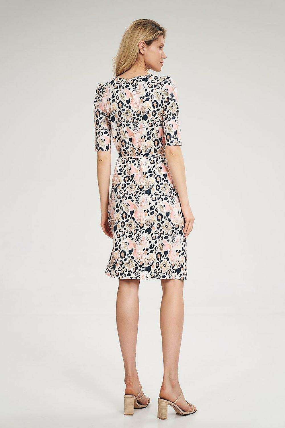 Stylish Leopard Print Midi Dress with Ruffled Sleeves and Envelope Design