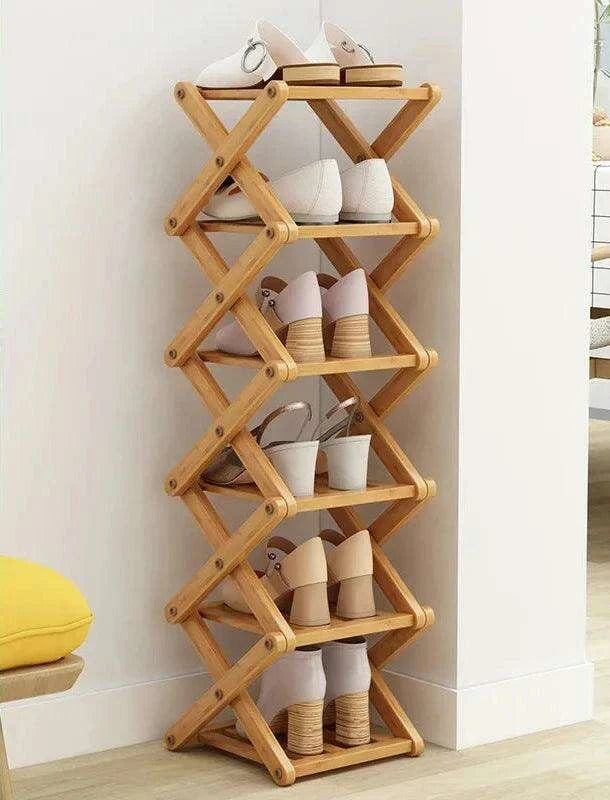 Stylish Multi-Tier Bamboo Footwear Organizer for Efficient Home Storage..