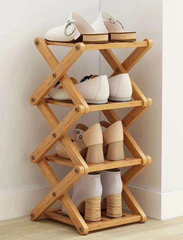 Stylish Multi-Tier Bamboo Footwear Organizer for Efficient Home Storage..