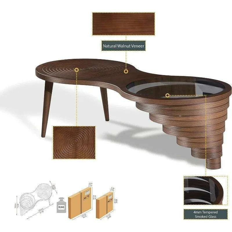 • Durable Construction: Crafted with 4mm tempered smoked glass, MDF, and walnut veneer, ensuring a robust and distinctive coffee table that lasts.