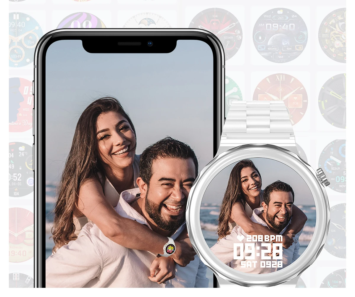 Après vous être connecté à l'application mobile, vous pouvez télécharger des cadrans plus exquis sur le marché des cadrans de montre. Si vous souhaitez être plus personnalisé, vous pouvez télécharger vos photos préférées et créer vos propres cadrans.