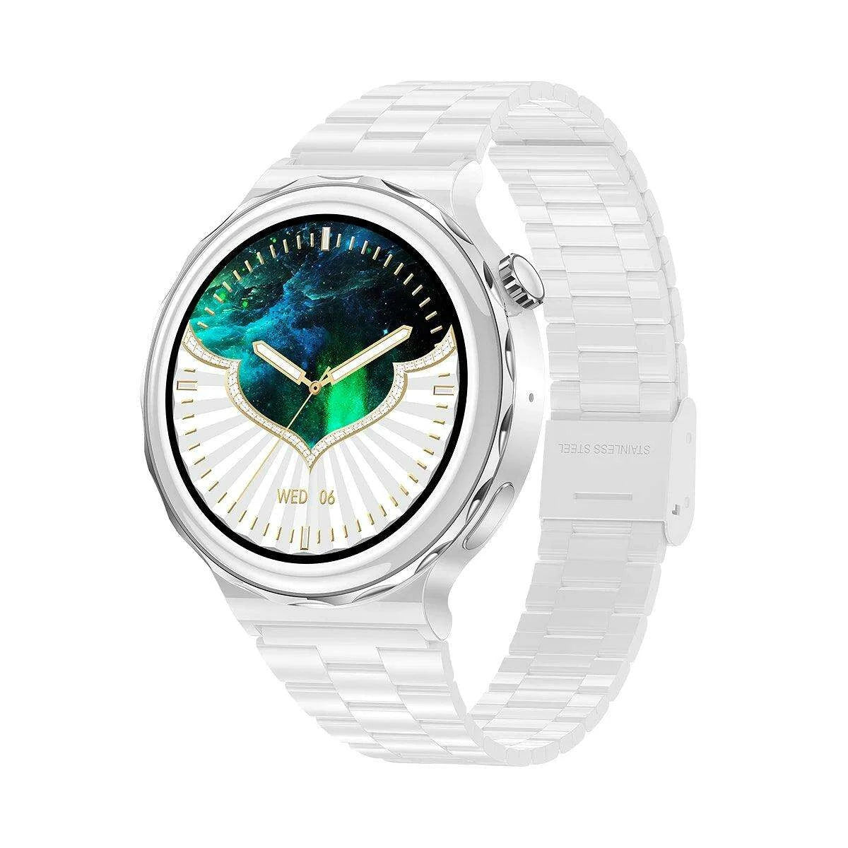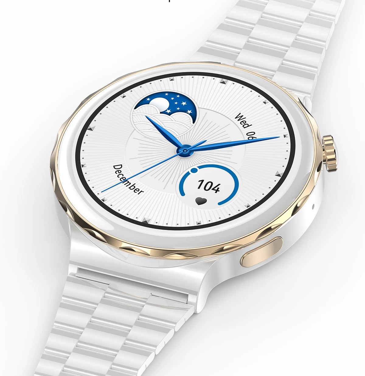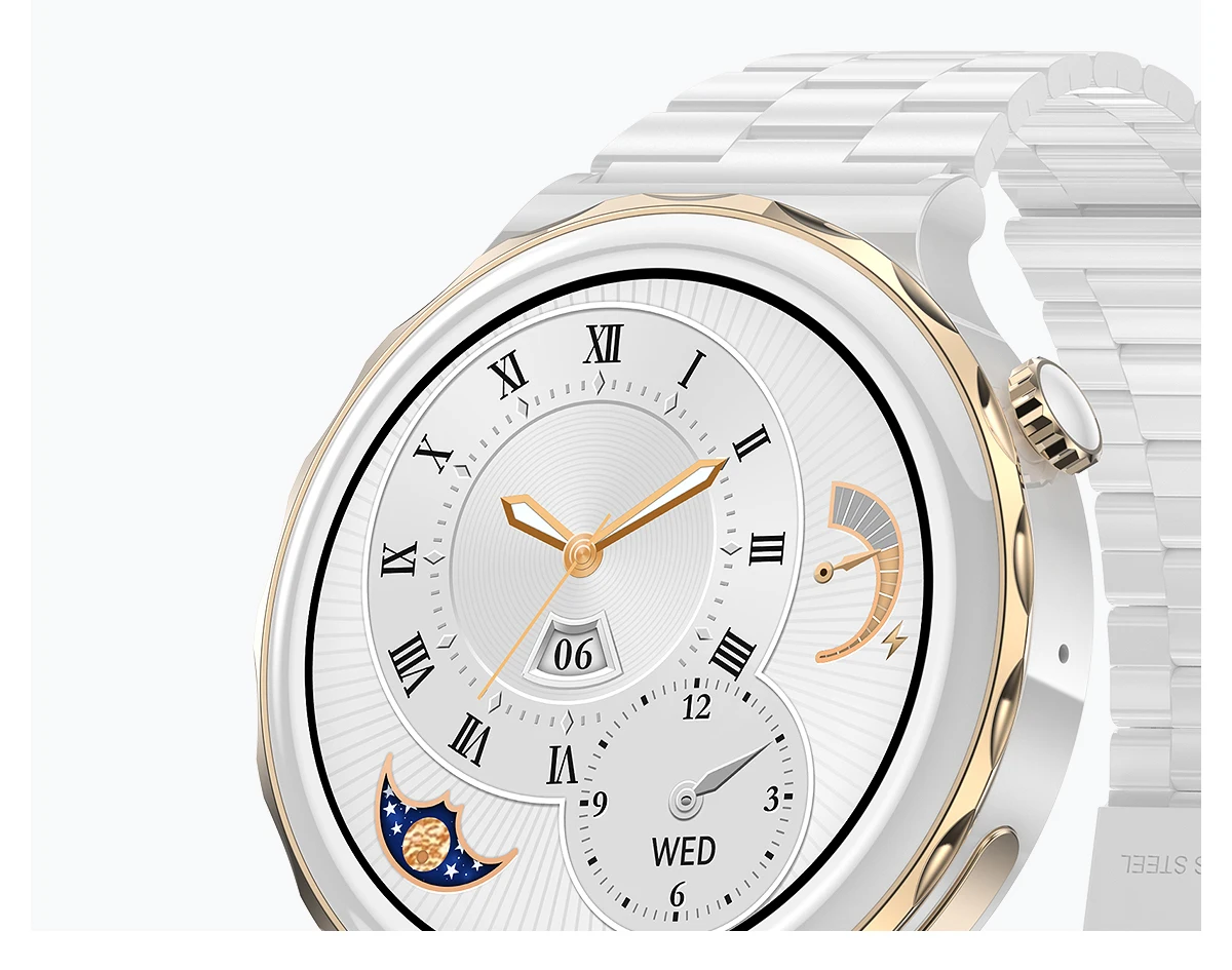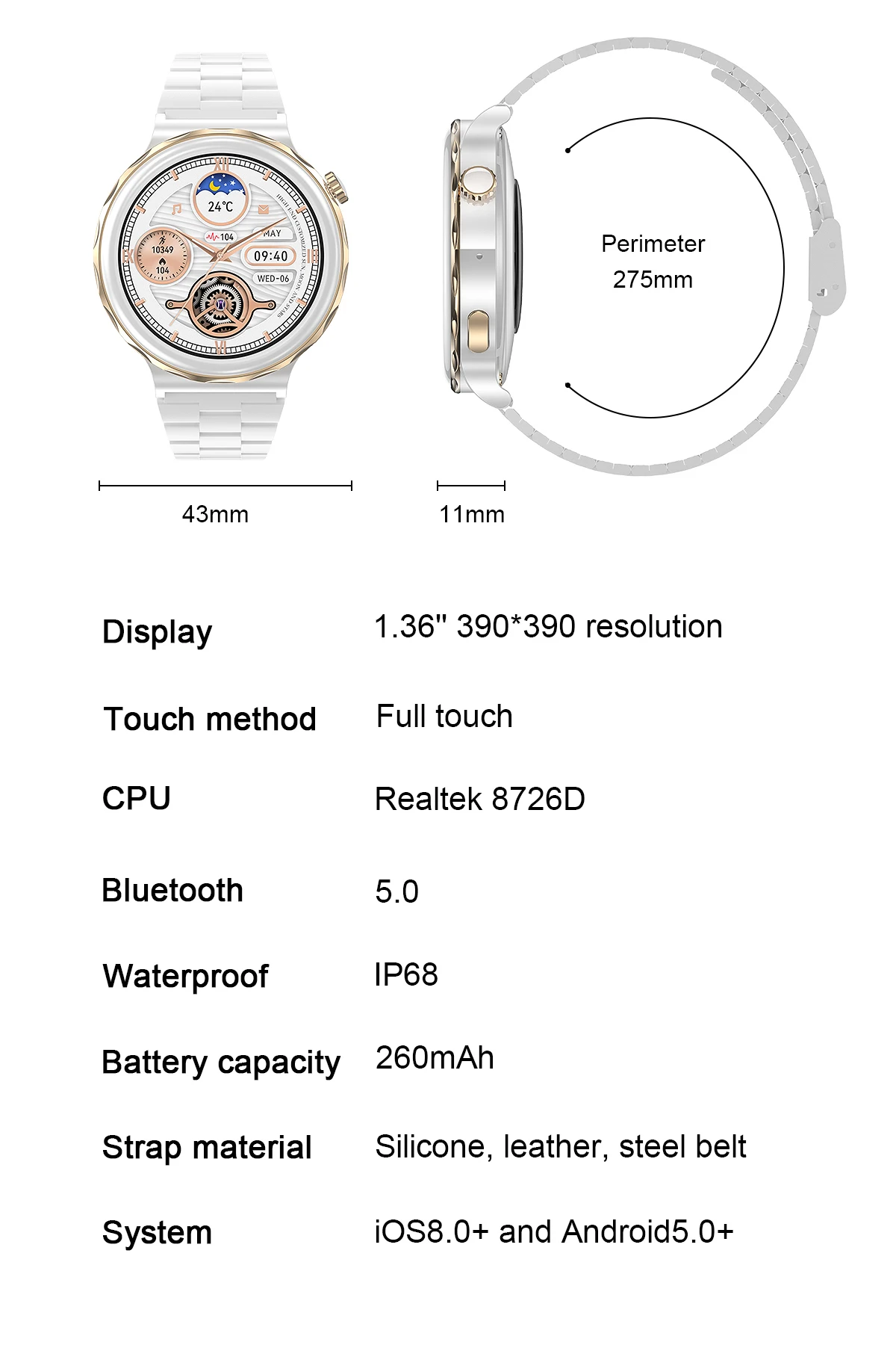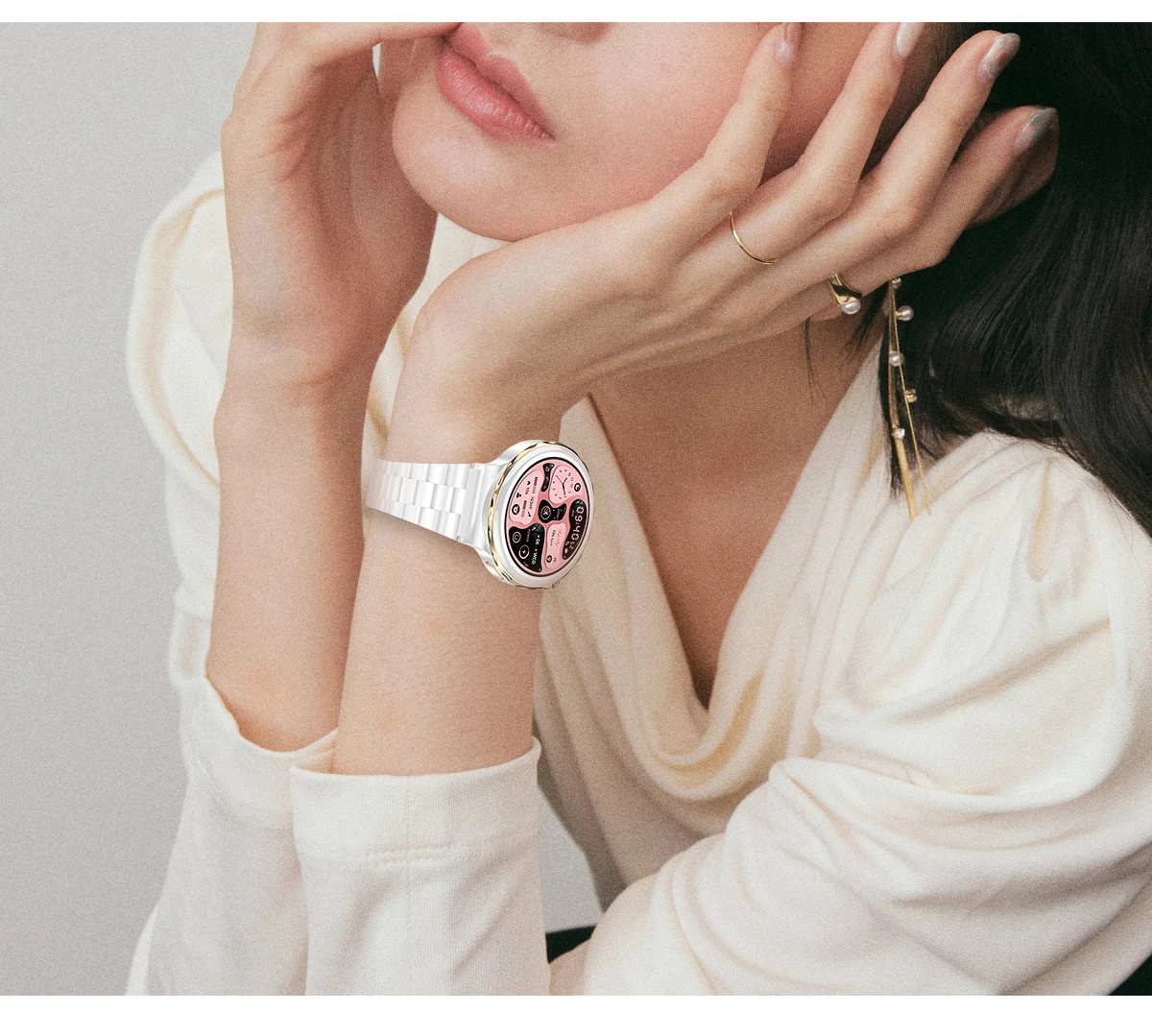 L'ensemble du corps de la montre est fabriqué en métal blanc, avec le miroir en verre saphir de l'écran, l'apparence et la sensation sont brillantes et transparentes. L'intégration de la technologie moderne dans l'artisanat classique est un design à la mode qui révèle un rythme plus profond, créant un nouveau poignet unique. accessoire.
