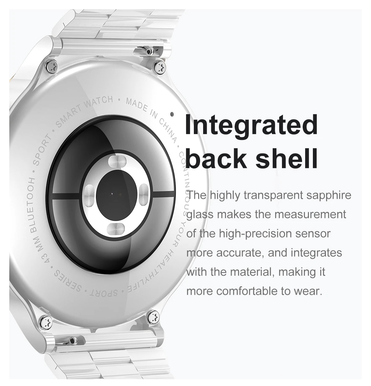Le verre saphir hautement transparent rend la mesure du capteur de haute précision plus précise et s'intègre au malerial, le rendant plus confortable à porter.