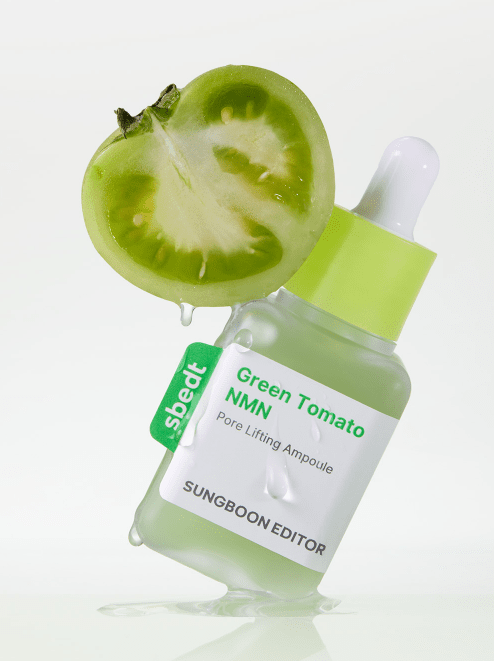 Introducing SUNGBOON EDITOR Green Tomato NMN Pore Refining Ampoule 40ml, a low-irritation, high-performance formula that redefines pore care. Powered by NMN and a patented Green Tomato Complex, along with panthenol and a targeted blend of actives, this ampoule is designed to lift skin elasticity and refine the appearance of pores.