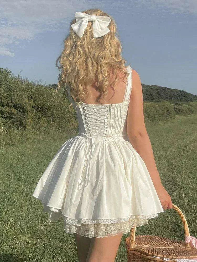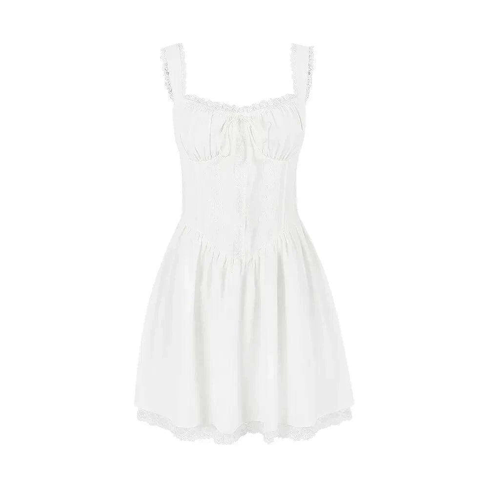 Suninheart White Lace Spaghetti Strap A-line Dress - Effortless Summer Elegance
