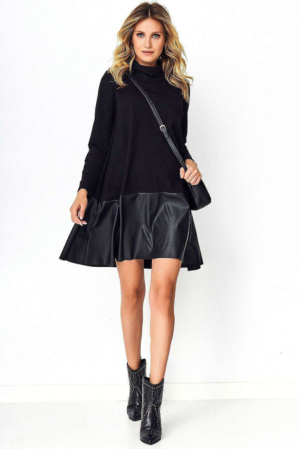- Unique Material Blend: Crafted from a special combination of sweatshirt material and eco-leather, this dress provides an unparalleled comfort level while making a bold fashion statement.