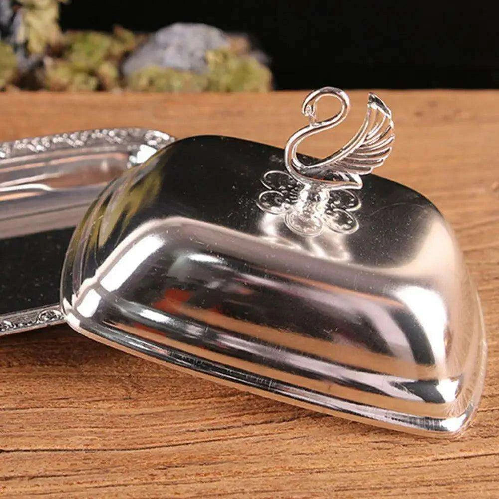 Swan-Inspired Stainless Steel Serving Platter with Protective Lid