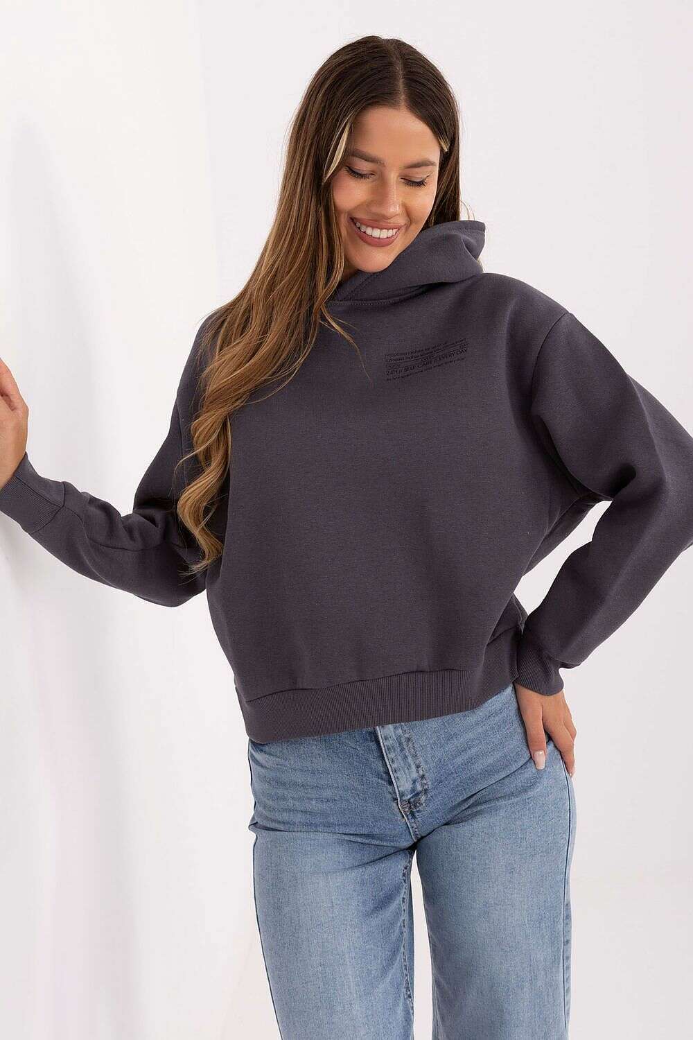Women's hoodie in a casual style, perfect for everyday occasions. Made of a blend of cotton and polyester, it provides comfort and pleasant warmth. The model with long sleeves and a practical hood, gently insulated for greater comfort. On the front there is a subtle, small print, and the smooth material makes the hoodie easy to mix and match with various stylings.