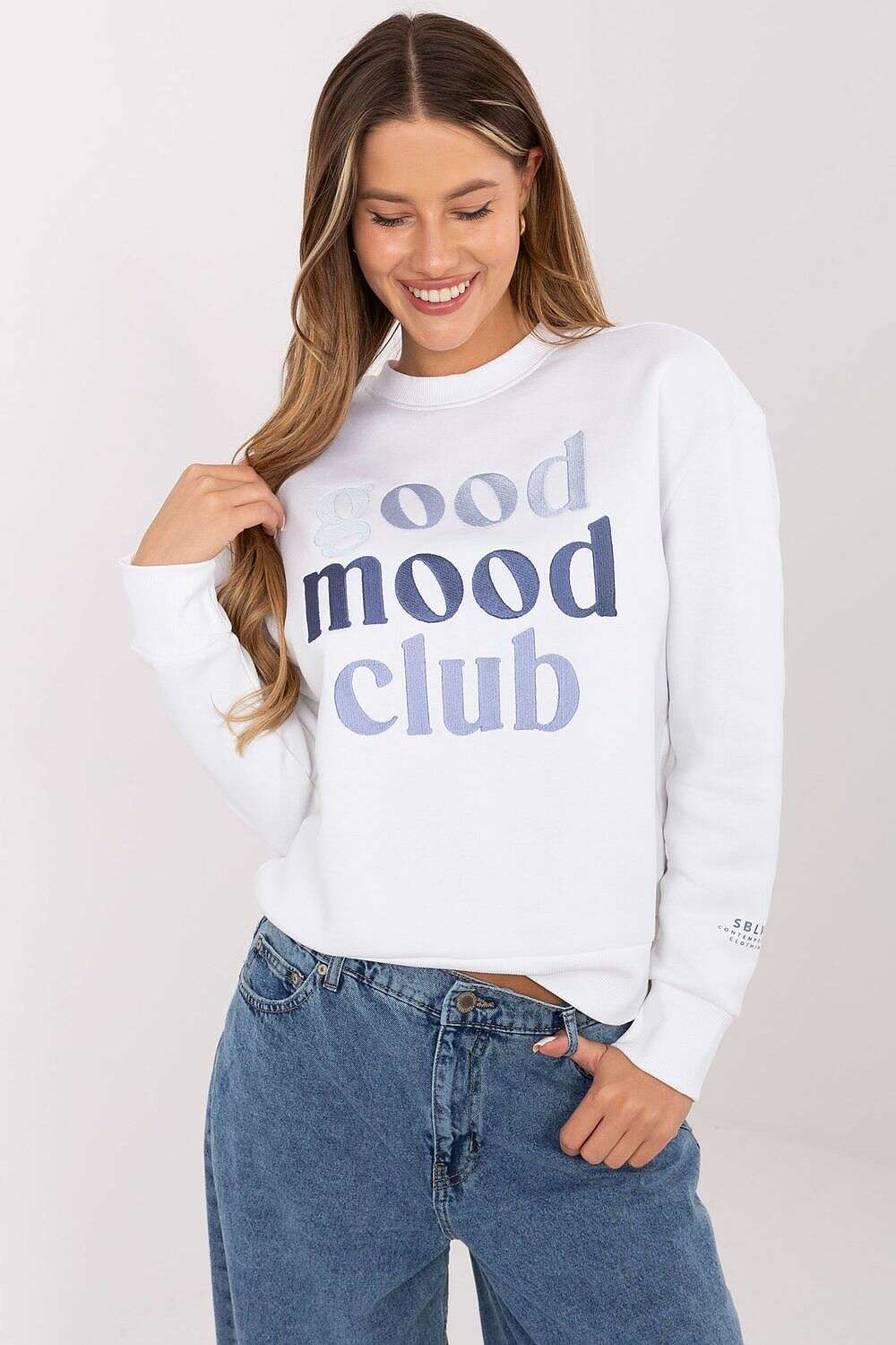 Women's sweatshirt with a round neckline in a casual style, perfect for everyday occasions. Made of high-quality cotton, it provides comfort and pleasant warmth. A standard length model with long sleeves, subtly insulated. On the front there is an elegant, embroidered inscription that gives the sweatshirt character and a fashionable look.