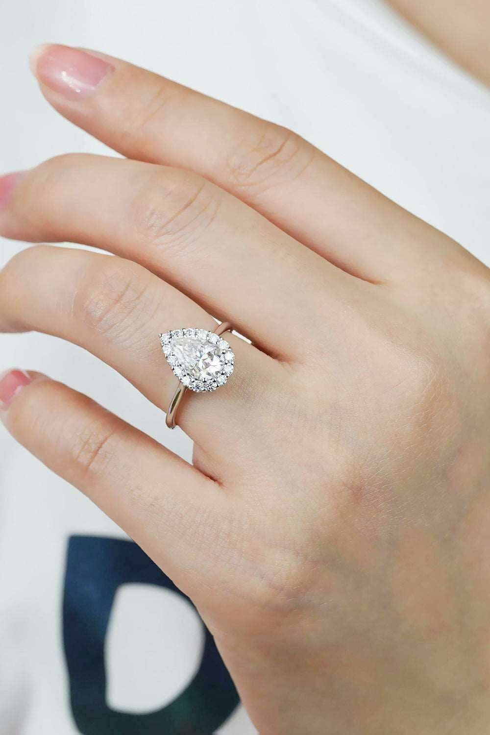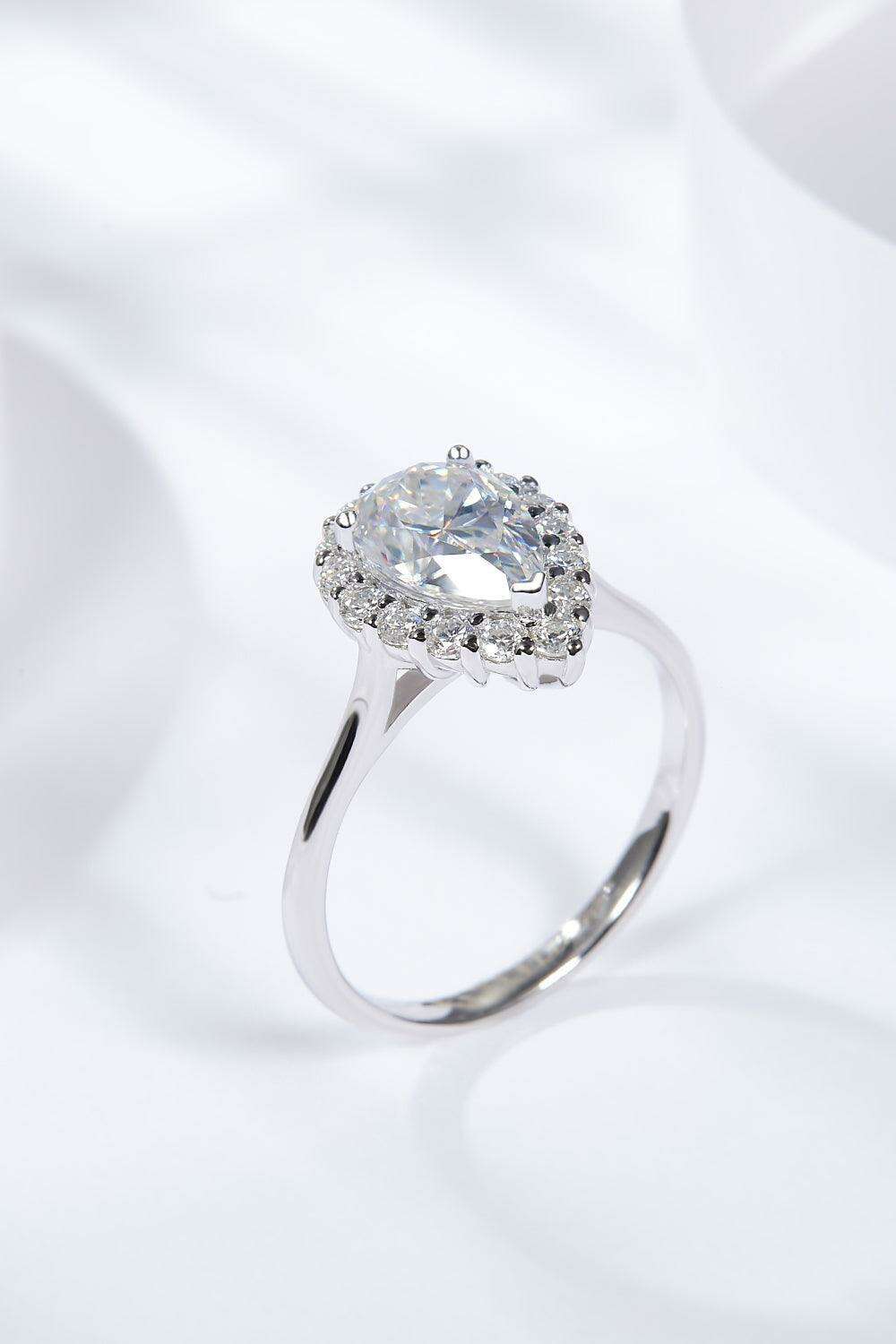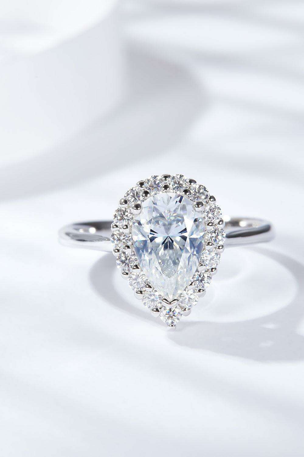 Teardrop Moissanite Sterling Silver Ring - Elegant 1.5 Carat Design with Platinum Finish