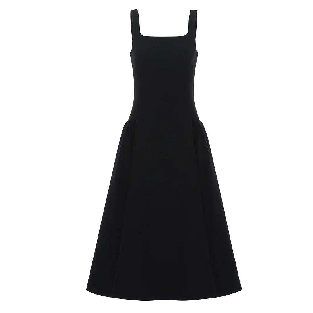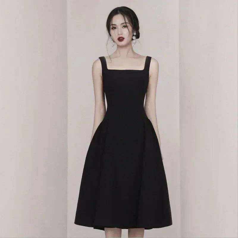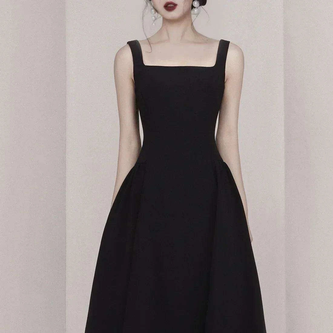 Timeless Elegance Black Silk Midi Dress - Classic Audrey Hepburn Inspired Gown