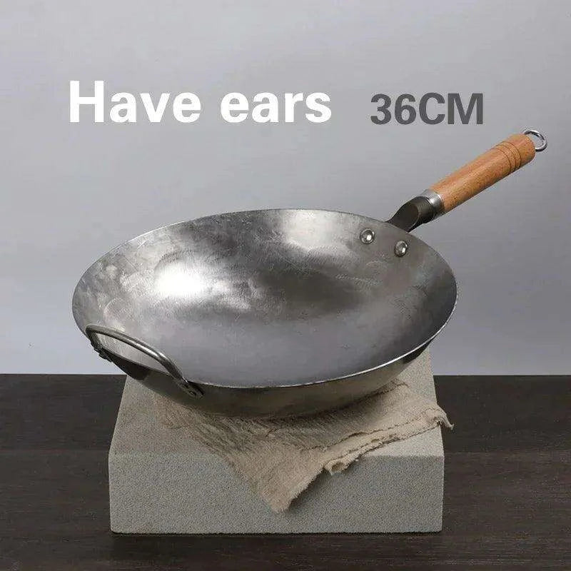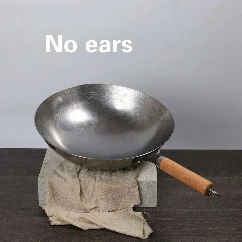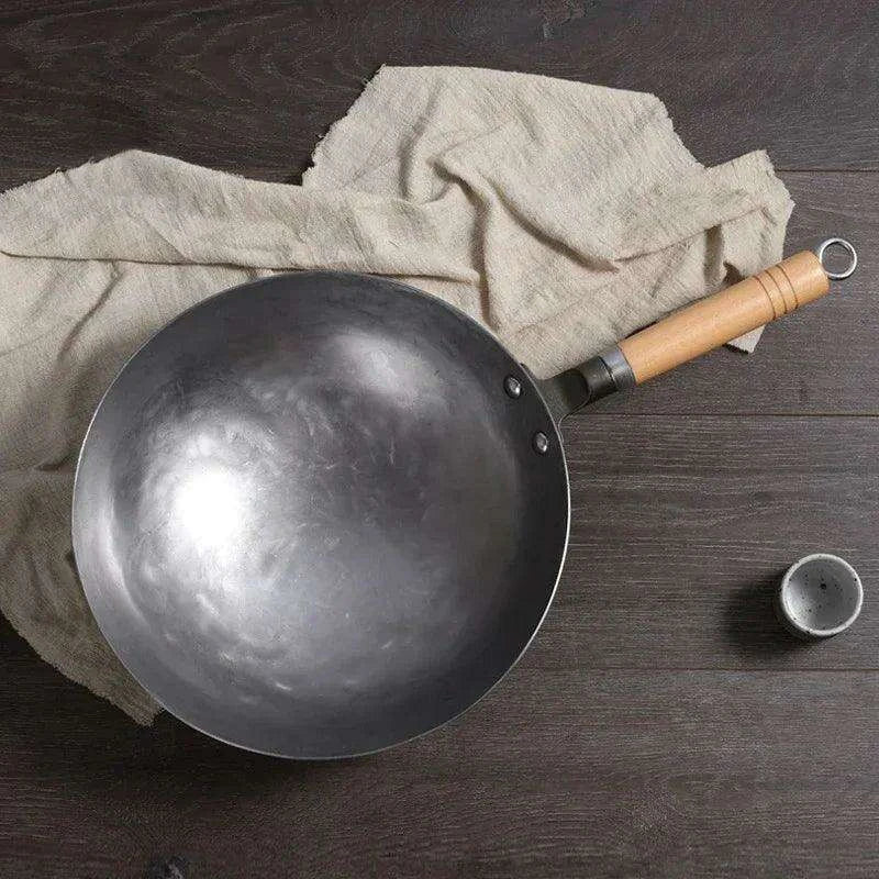 Traditional Chinese Handcrafted Iron Wok with Wooden Handle - Premium Non-Stick Cookware for Gas Hobs