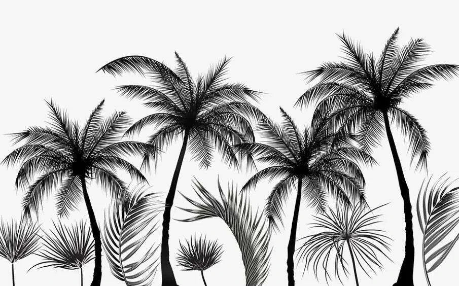 Transform your space into a tranquil oasis with the Serene Coconut Tree Paradise 3D Wall Mural. This captivating wallpaper showcases a mesmerizing black and white tropical rainforest setting, effortlessly transporting you to a world of serenity and elegance.