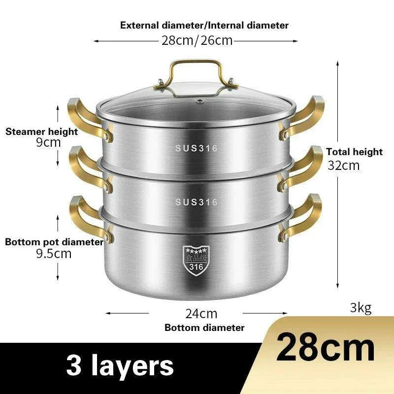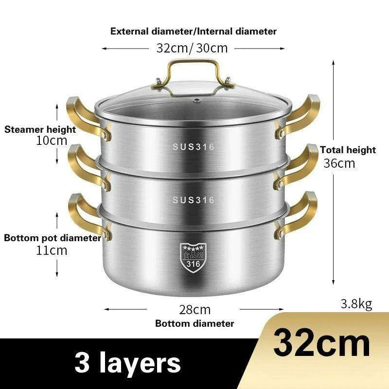 Premium Triple Layer 316 Stainless Steel Steamer: The Ultimate Kitchen Essential