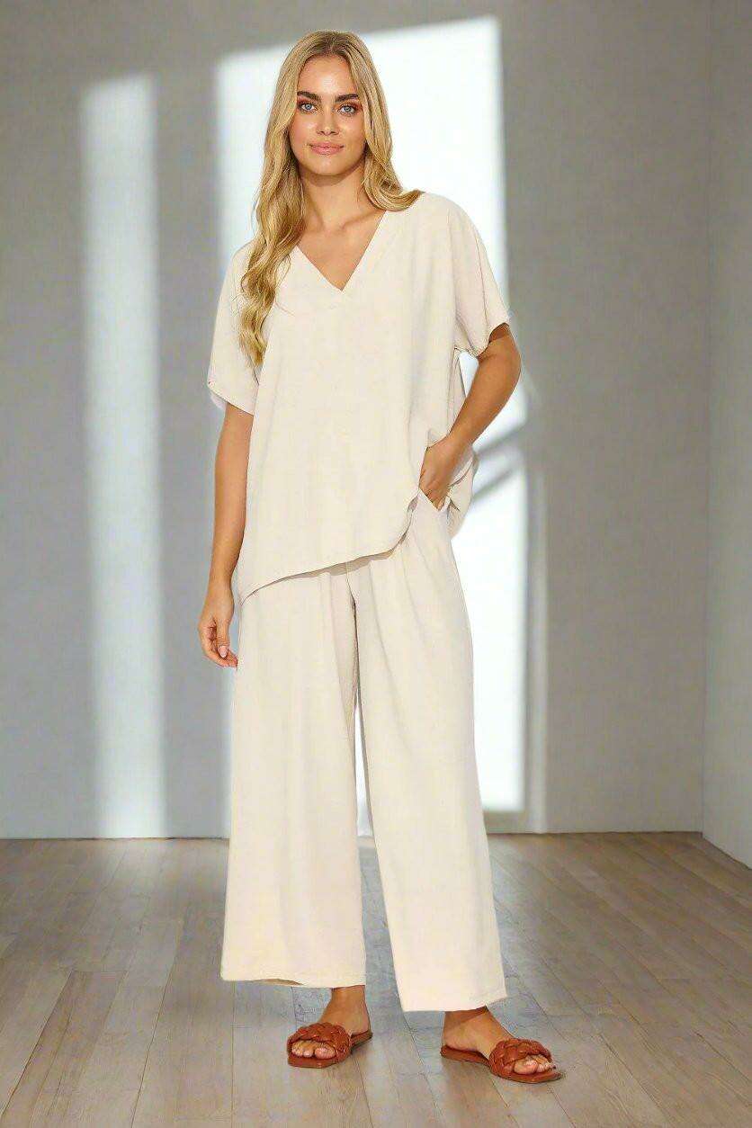 Embrace the perfect blend of sophistication and comfort with the Chic Urban Elegance Women's Set. This stunning ensemble, featuring a fashionable blouse and relaxed wide-leg pants, is designed to elevate your everyday style.