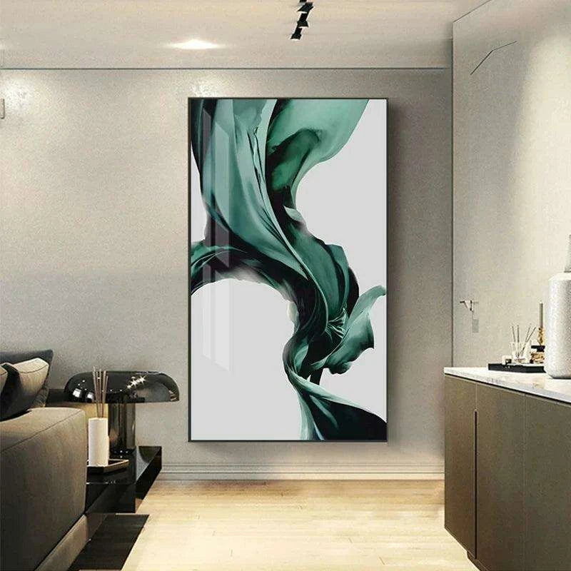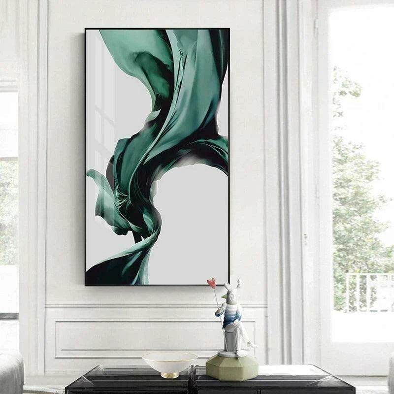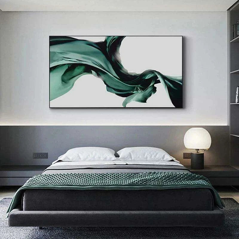Transform your living space into a sanctuary of style with our Elegant Green Silk Abstract Canvas Art. This captivating piece serves not only as a decoration but as a bold statement of elegance and modernity, enhancing the ambiance of any room.