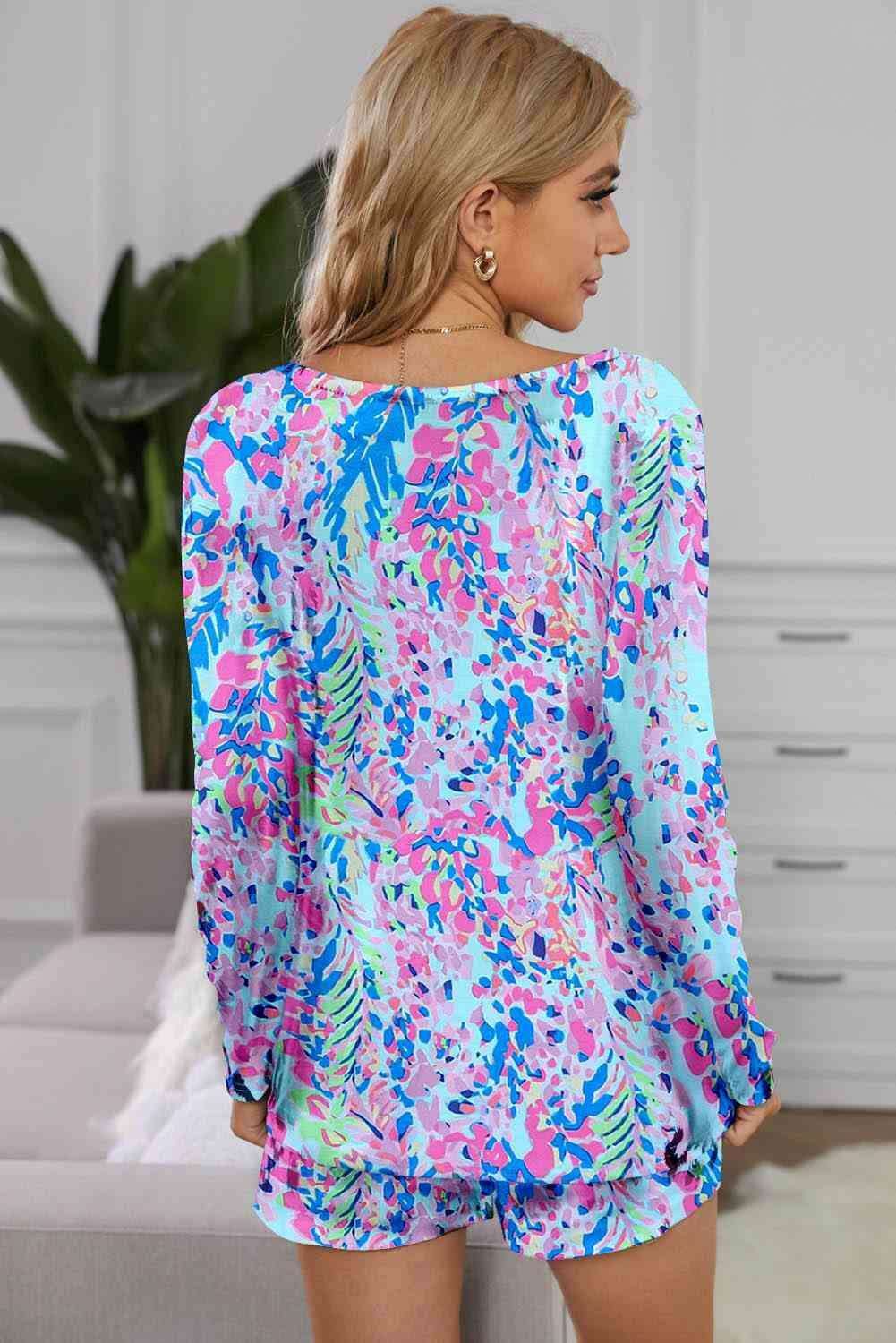 Vibrant Two-Piece Cozy Lounge Set with Round Neck Top and Matching Shorts