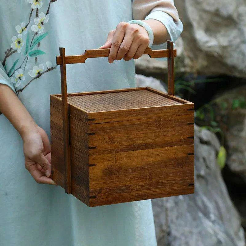 Vintage Artisan Wooden Fruit Holder with Chic Lid and Dividers | Timeless Style..