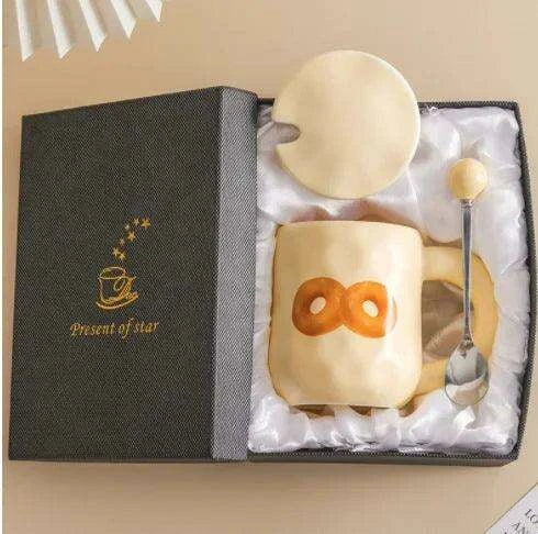 Whimsical Korean Cartoon Ceramic Mug Set with Lid and Spoon - Playful Drinkware Delight