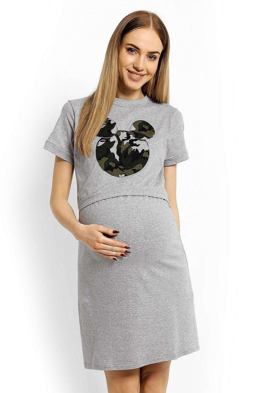 Charming Maternity Nightshirt with Adorable Mouse Patch