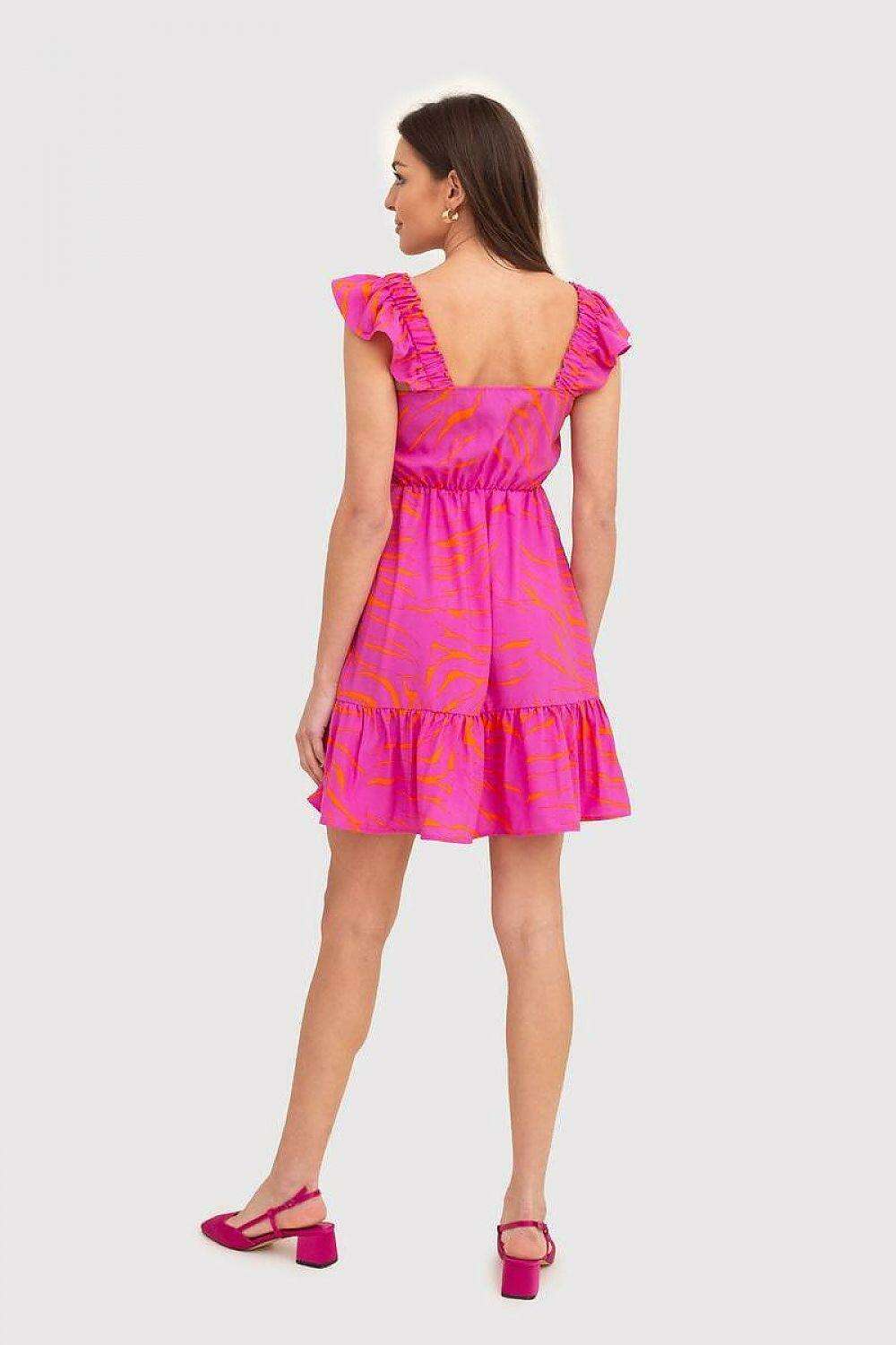 Charming Pink Ruffle Mini Dress with Butterfly Sleeves by Ax Paris