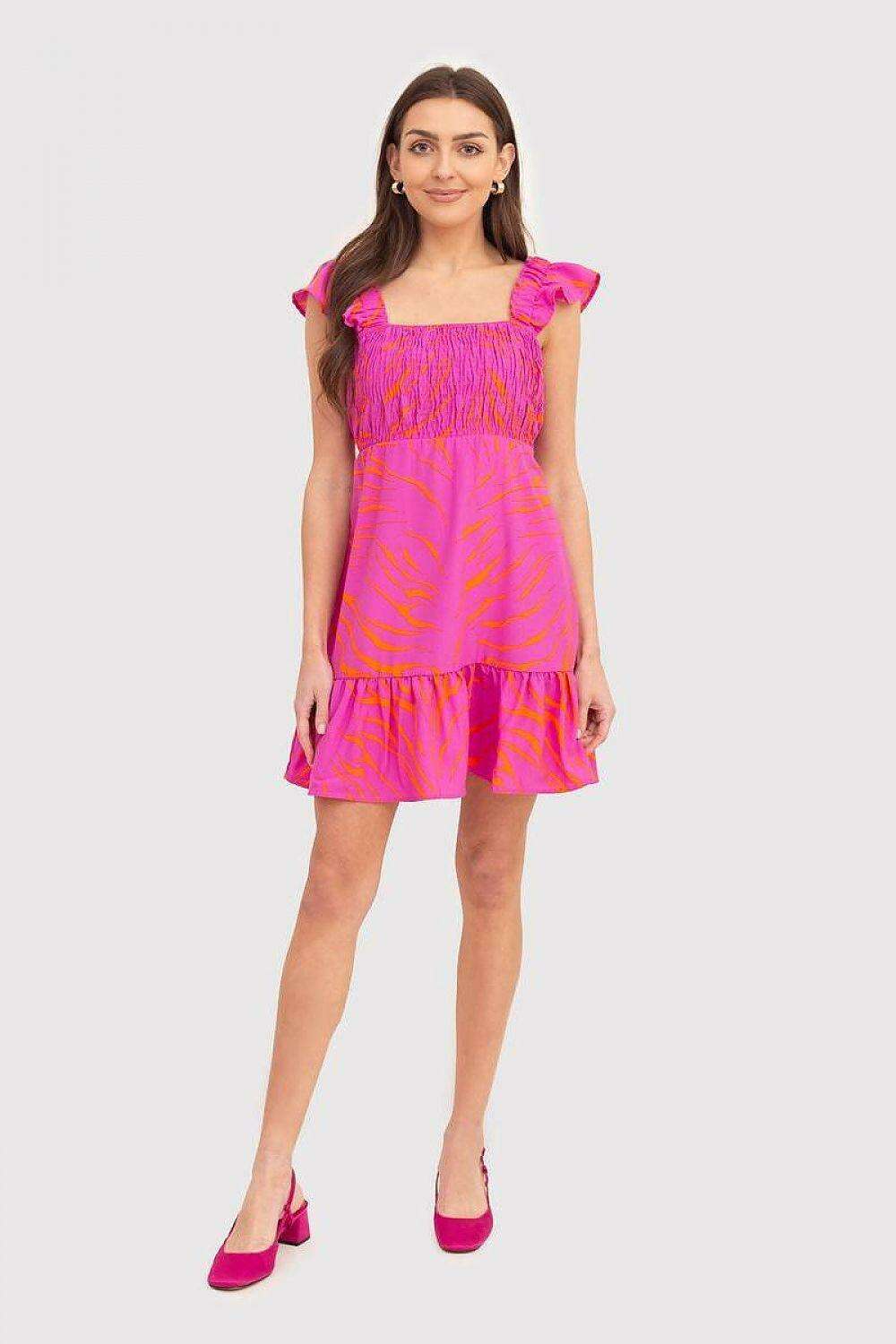 What sets the Charming Pink Ruffle Mini Dress with Butterfly Sleeves by Ax Paris apart from competitors is its perfect blend of playful design and sophisticated style. Whether you're heading out for brunch, a picnic in the park, or a casual evening with friends, this dress is versatile enough to fit any occasion. Choose this dress to elevate your wardrobe with a touch of femininity and flair!