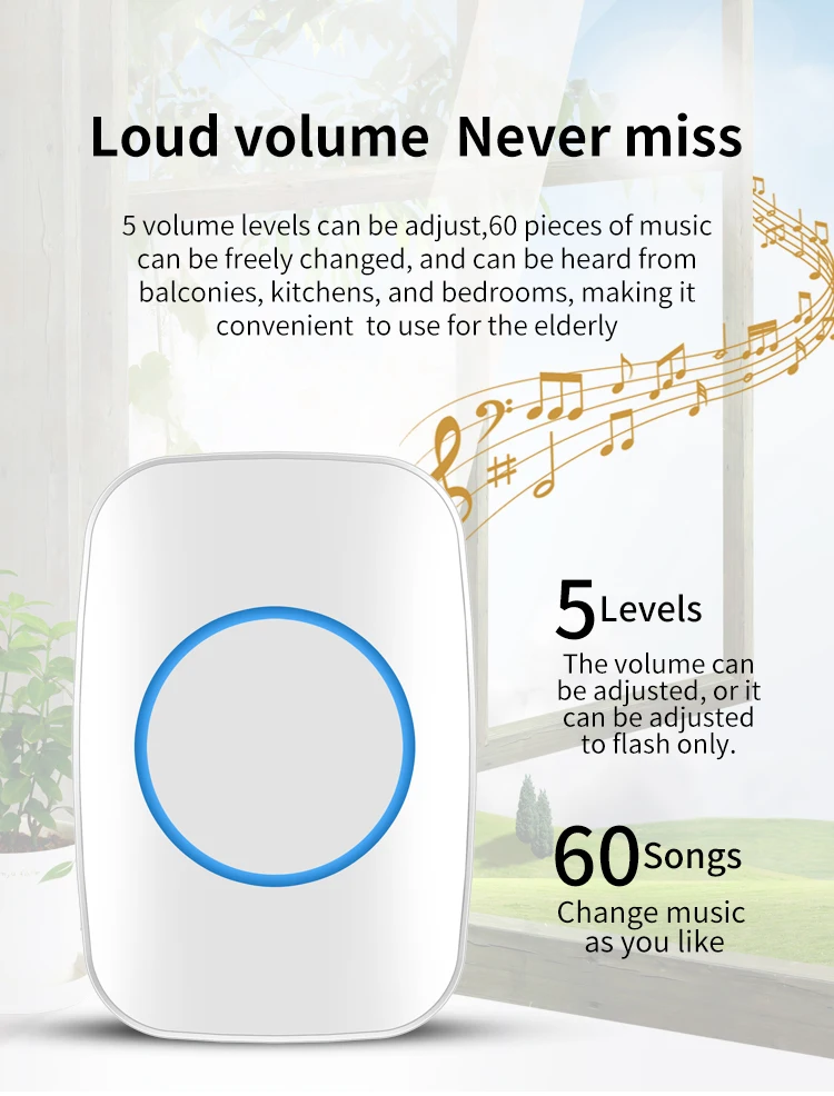 Appuyez et maintenez enfoncé le bouton de volume du récepteur avant de brancher la prise de courant. Branchez la prise de courant jusqu'à ce que la lumière du récepteur s'allume, relâchez le bouton de volume, appuyez sur le bouton de musique pour régler la sonnerie musicale préférée, appuyez à nouveau sur le bouton de volume et maintenez-le enfoncé jusqu'à ce que lorsque la lumière soit allumée, appuyez deux fois immédiatement sur l'émetteur. et la musique est verrouillée avec succès.