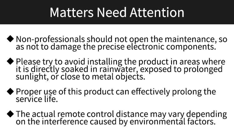 Émetteur: utilisez une batterie 1 * 12V23A (batterie non incluse)