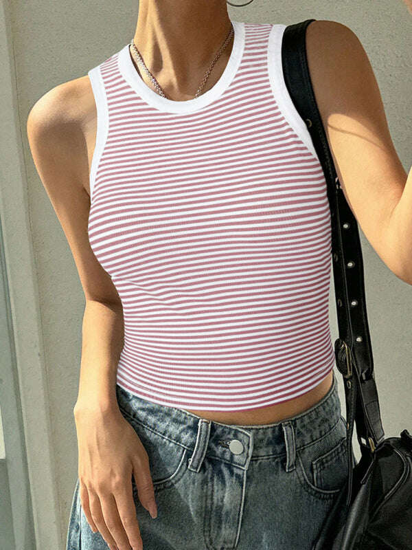 Y2K sexy sweet and spicy knitted striped contrasting top vest bottoming shirt