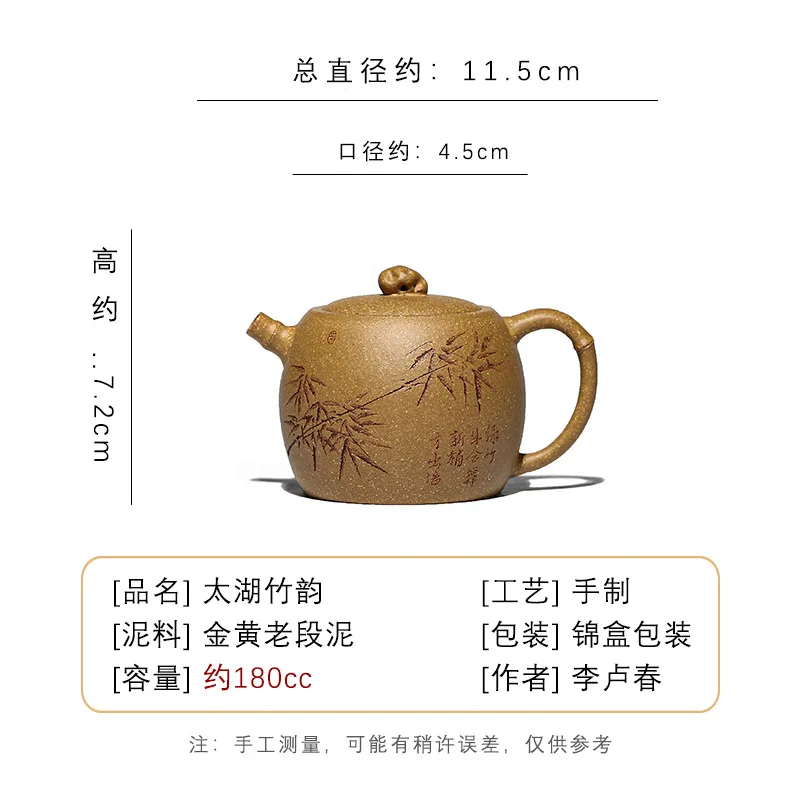 Yixing – pot en argile violette fait à la main, vieille boue dorée, service à thé Taihu Lake Zhuyun Kung Fu, théière chinoise, 180ml
