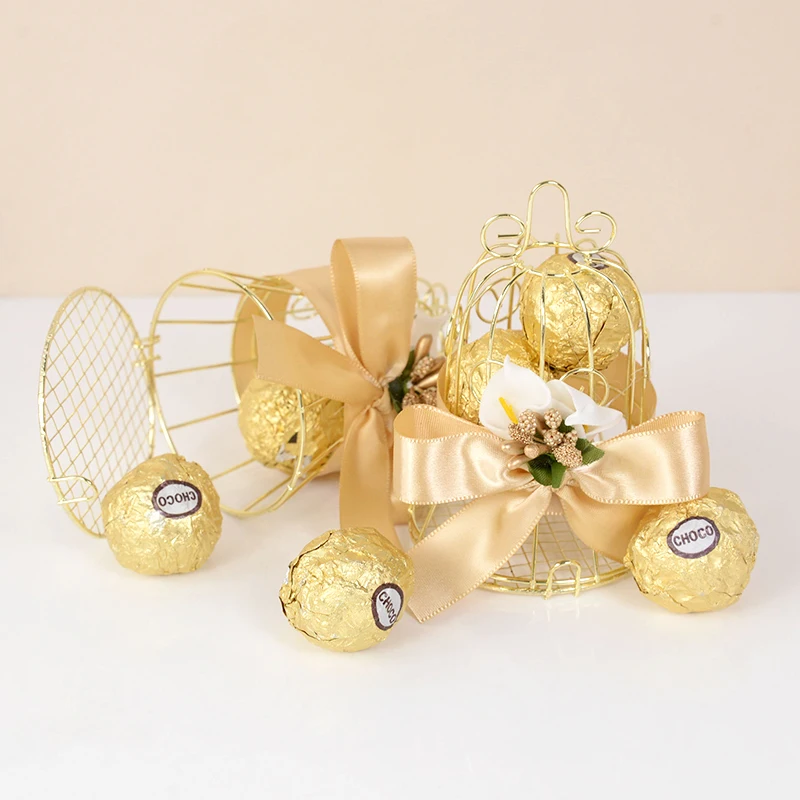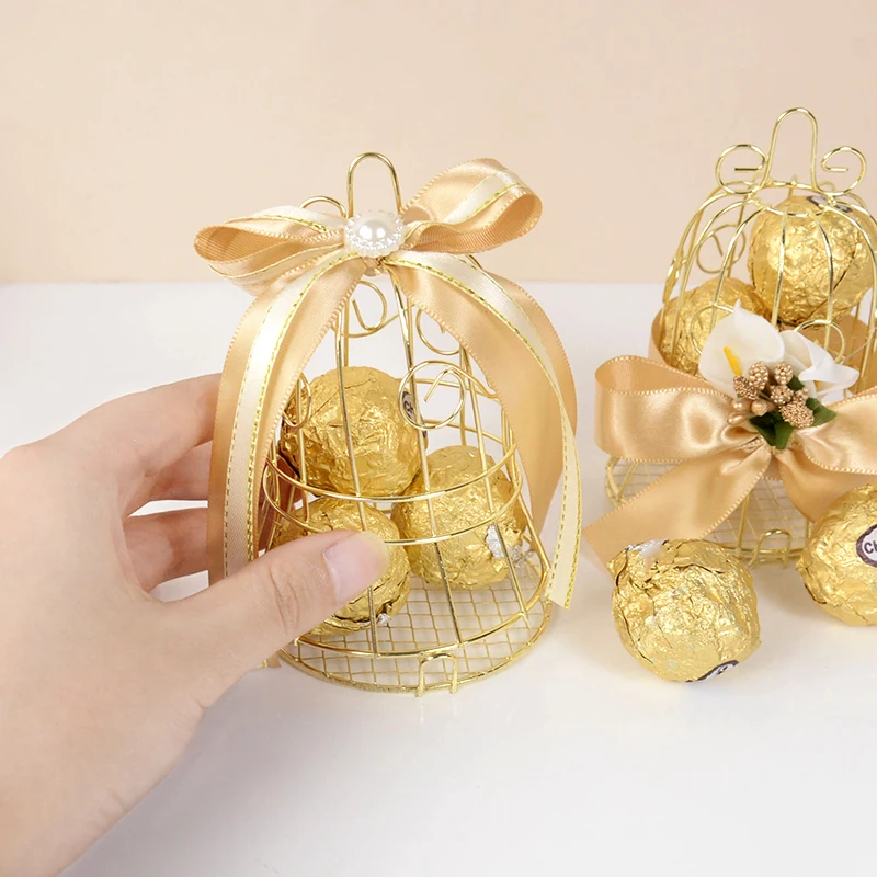 1/5Pcs 웨딩 미니 금속 골드 새장 사탕 상자 베이비 샤워는 손님을위한 선물 상자를 선호합니다 생일 파티 장식 용품