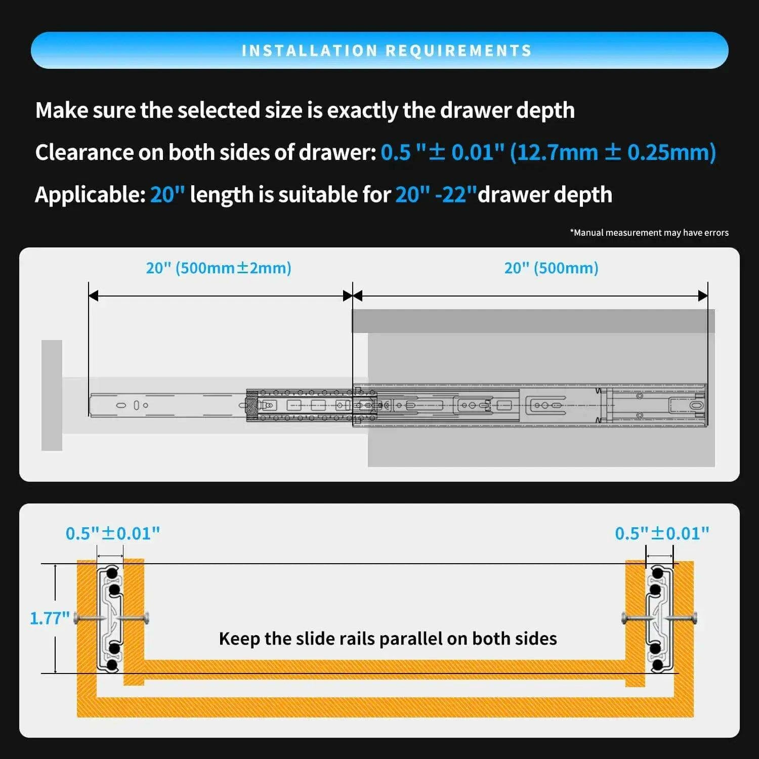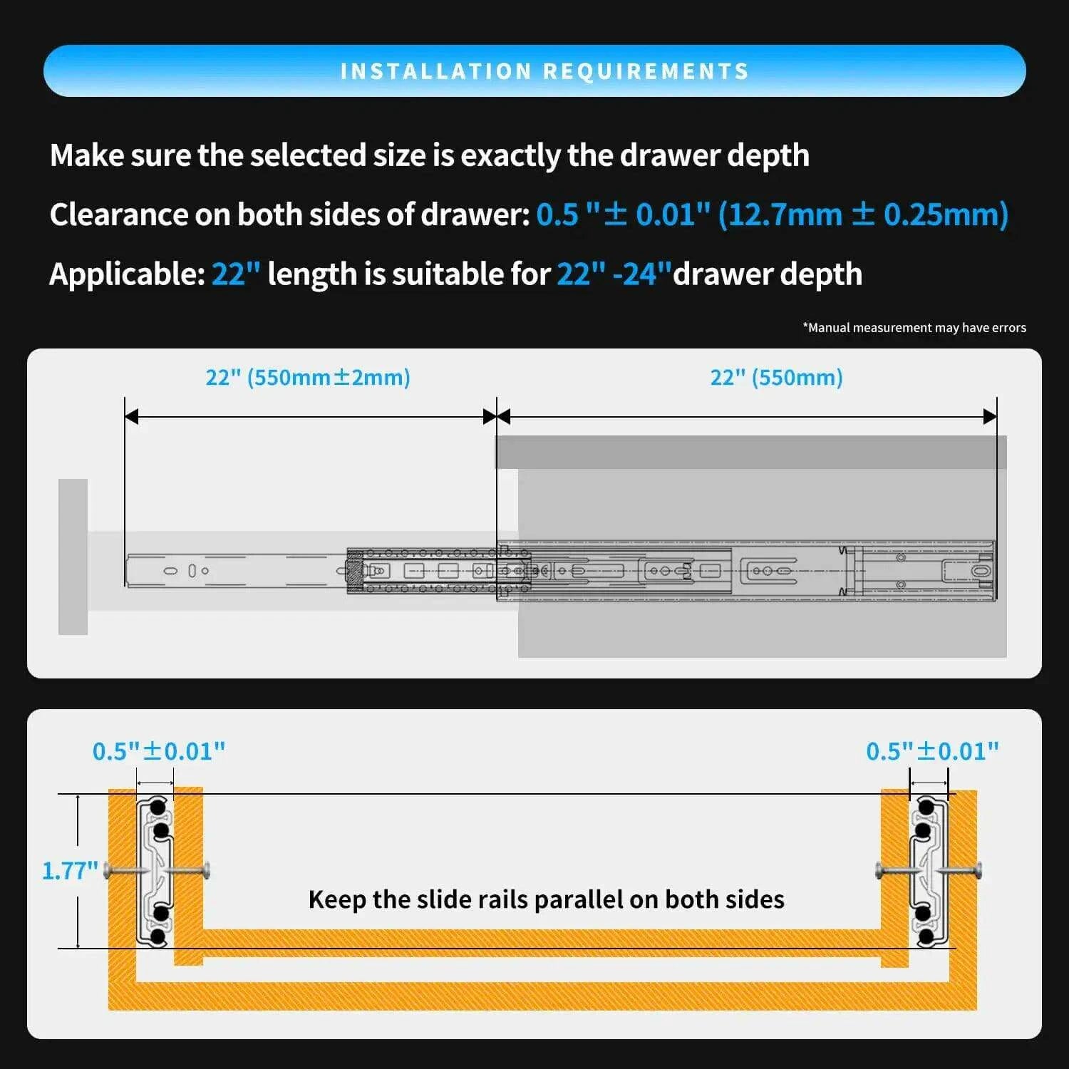 • Rust Resistance: With an anti-rust electrophoretic finish, these slides are designed for lasting durability, even in humid conditions.