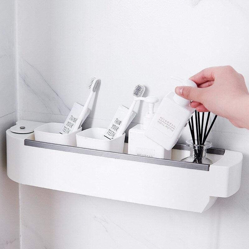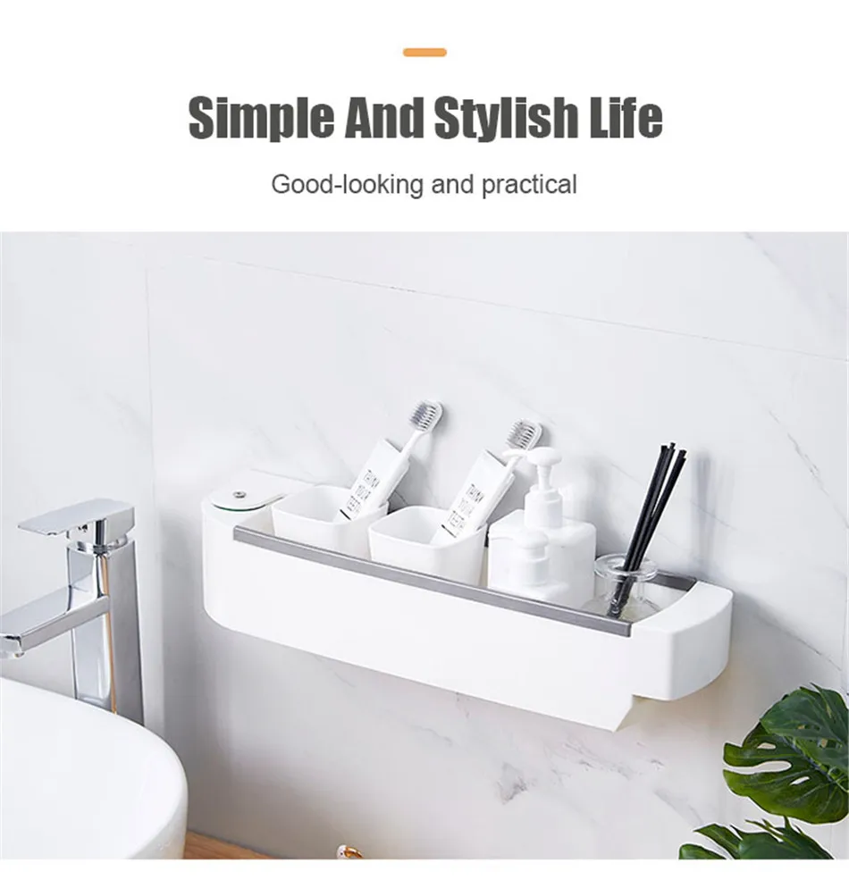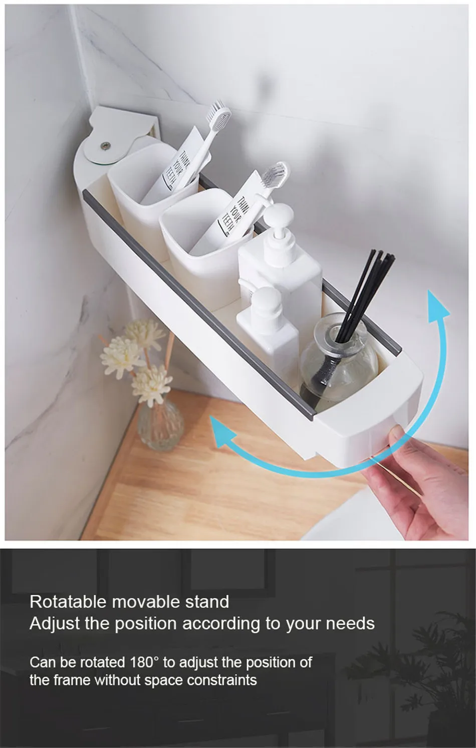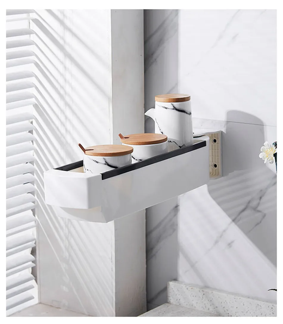 벽 교수형 스토리지 랙 천공없이 다기능 욕실 주방 플라스틱 회전 선반 주방 목욕 액세서리