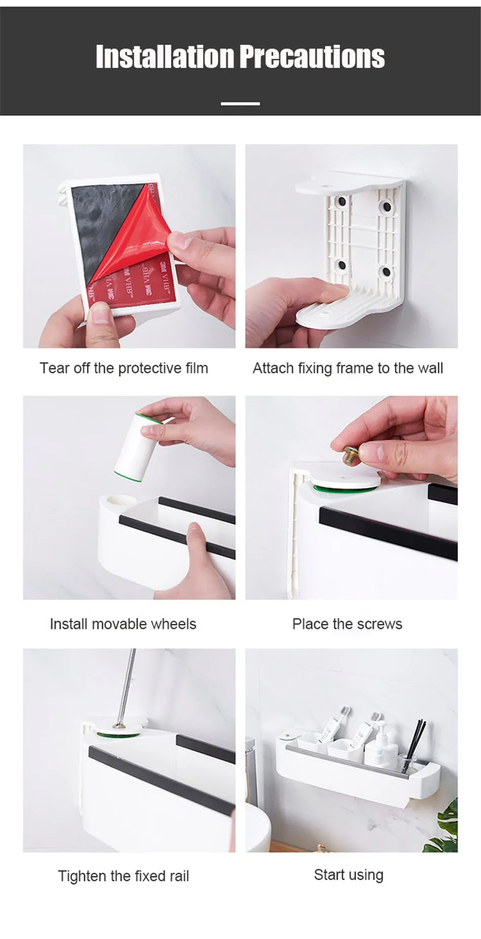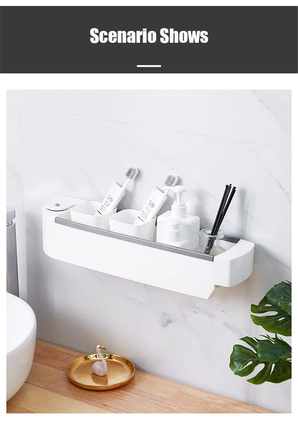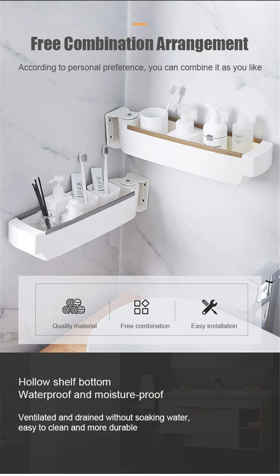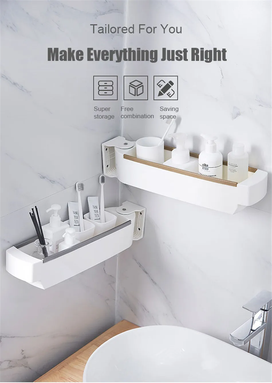 벽 교수형 스토리지 랙 천공없이 다기능 욕실 주방 플라스틱 회전 선반 주방 목욕 액세서리