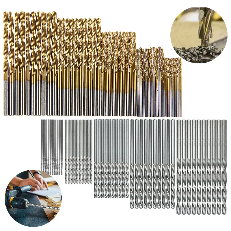 50Pcs 티타늄 코팅 HSS 고속 강철 드릴 비트 세트 금속 구멍 그루 빙 드릴 톱 목수 목공 도구