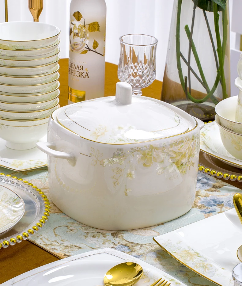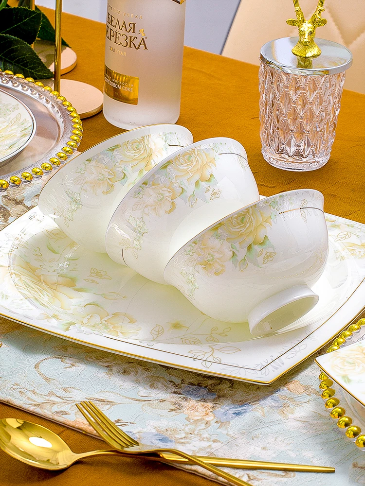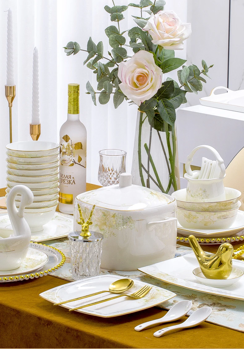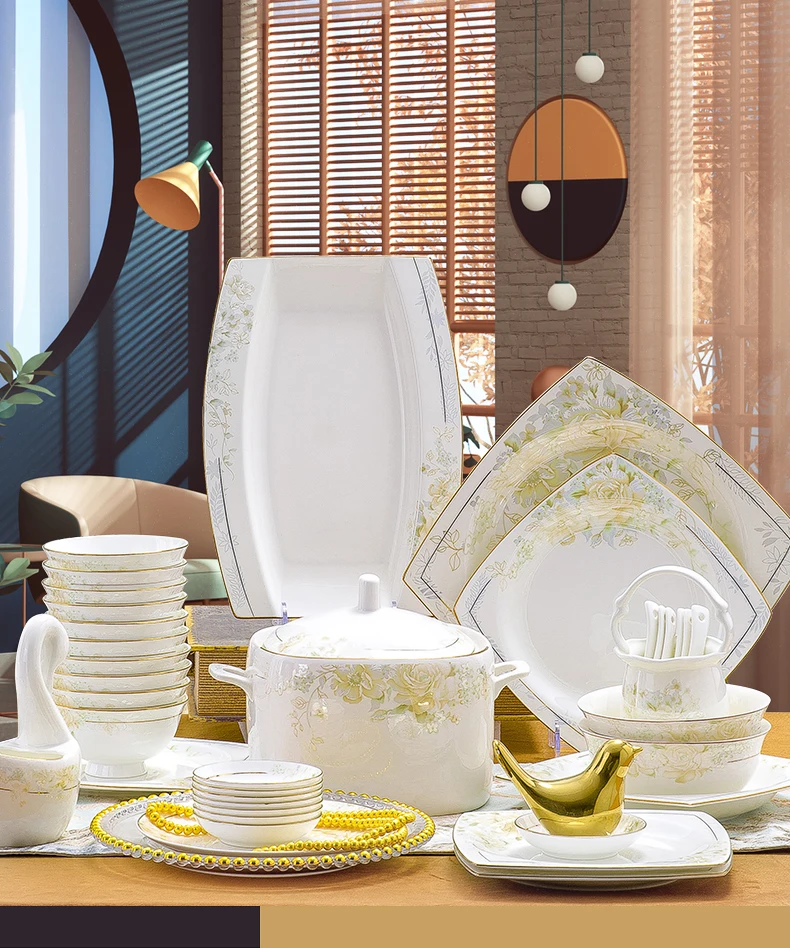 정교한 징더전 도자기 중국 요리 세트로 식사 경험을 향상해보세요. 고급 도자기로 제작된 이 세트는 밥그릇, 샐러드그릇, 국수그릇 등 다양한 용도로 사용할 수 있는 60개의 그릇으로 구성되어 있어 가정식, 커피 브레이크, 호텔 식사, 사랑하는 사람과의 식사 등 다양한 상황에 적합합니다. 결혼식을 위한 사려 깊은 선물.
