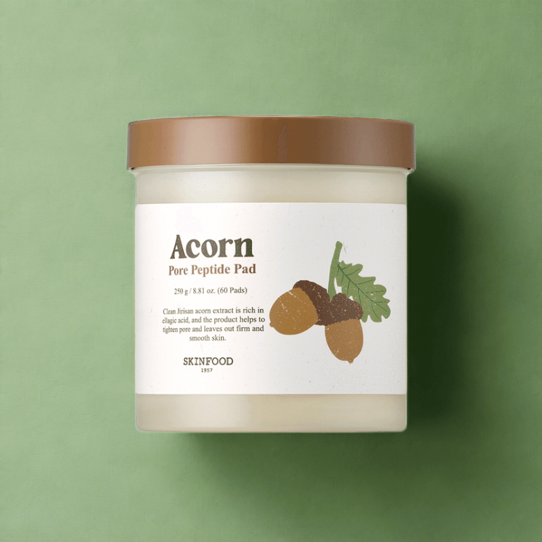 Unlock the secret to beautifully radiant skin with the Acorn Peptide Exfoliating Pads by SKINFOOD. Designed to refine and rejuvenate your complexion, these innovative pads are infused with powerful Jirisan acorn extract, specifically formulated to minimize the appearance of pores and enhance overall skin texture.