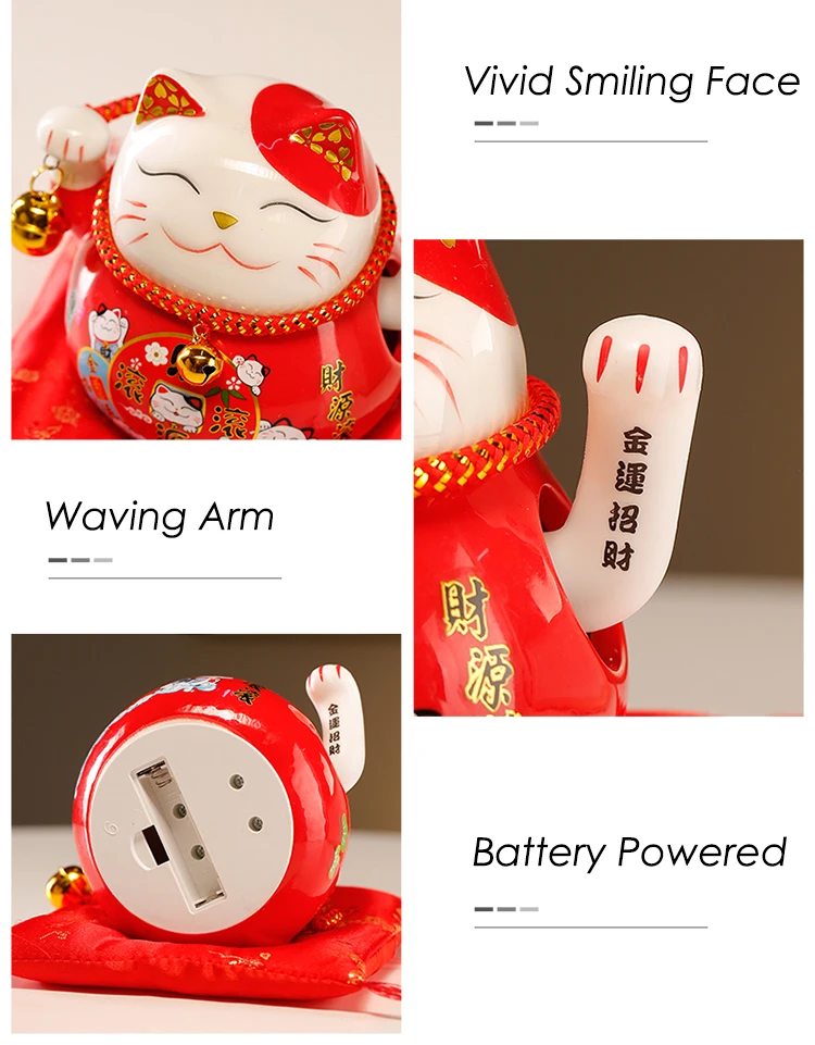 - Cute Design: With its cheerful smile and friendly wave, this lucky cat radiates warmth and charm, making it a perfect gift for family and friends.