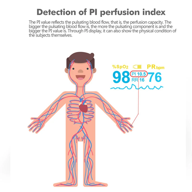 PI - 측정 범위: 0.2%-30%, PI는 관류 지수를 의미하며 혈액 관류 능력을 보여줍니다.